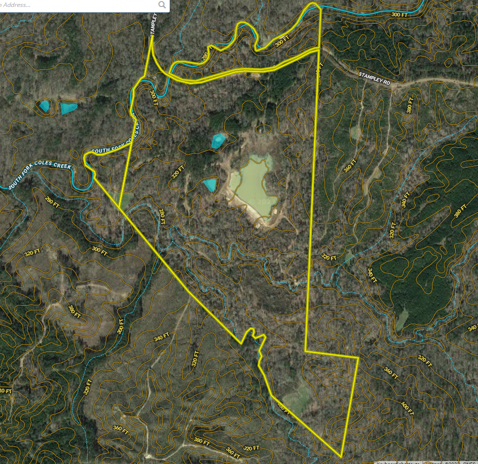 This property checks all the boxes and has a lot to offer!! To start there is a beautiful camp or homesite overlooking a 9 +/- acre lake. The property consists of areas with towering hardwoods, some that have been thinned to create some awesome deer and turkey habitat, and some areas with merchantable pine timber. South Fork Coles Creek runs along the Western and Northern boundaries which has a nice sand and gravel bottom and provides a year-round water source for the game. The property has a good road system leading to the creek and several food plots surrounded by thickets and holding plenty of deer. Two metal bridges have been installed for easy access across the creek. This area is known for producing some nice bucks every year. This is an old homeplace with an old home still standing that was built around 1898. You may decide to rebuild the old home or take advantage of the large magnolia and oaks to create your own lodge site. Electricity and water are available. For more information or to book a showing call listing agent Larry Stewart.