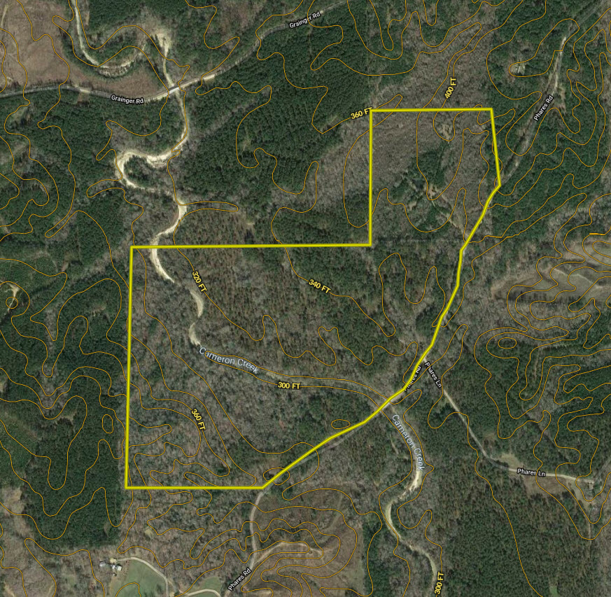 Phares Hilltop Farm is the perfect recreational, hunting and family getaway. The tract is the west side of Phares Hilltop Farm and is approximately 215 acres (To be determined by survey) and is situated in Franklin and Jefferson counties. Beautiful and historic Cameron Creek runs through this tract offering summertime fun for the kids and grandkids with its sandy beaches. This tract has several food plots established with interior roads already in place leading through the property. The terrain is level to gently rolling. The timber is made up of mostly mature pine (around 30 years old) and mature hardwoods with approximately 90 acres enrolled in CRP until next year. The property has paved road frontage in a very quiet, rural area yet easy to access. The owner has just installed a new bridge to access the property across a small creek. Electricity is already available on the road. There are an additional 380 +/- acres across the road that can be purchased. This tract is priced to sell at $2,600 per acre!!!!