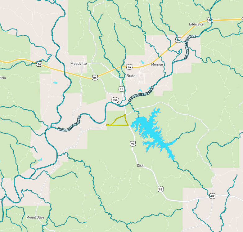 This tract is in an awesome location!!!! This prime hunting tract is situated straight across the road from Lake Okhissa and has direct frontage to Caston Creek WMA. The property also has tons of frontage on Yap rd. and Hwy 98 and is only minutes away from the conveniences of Bude and Meadville for hardware, groceries etc. The property is made up of a mix of hardwood timber and pine plantations and interior roads throughout. The tract also has investment potential for a development considering its proximity to the lake and the Homochitto National Forest. For more information give me a call.