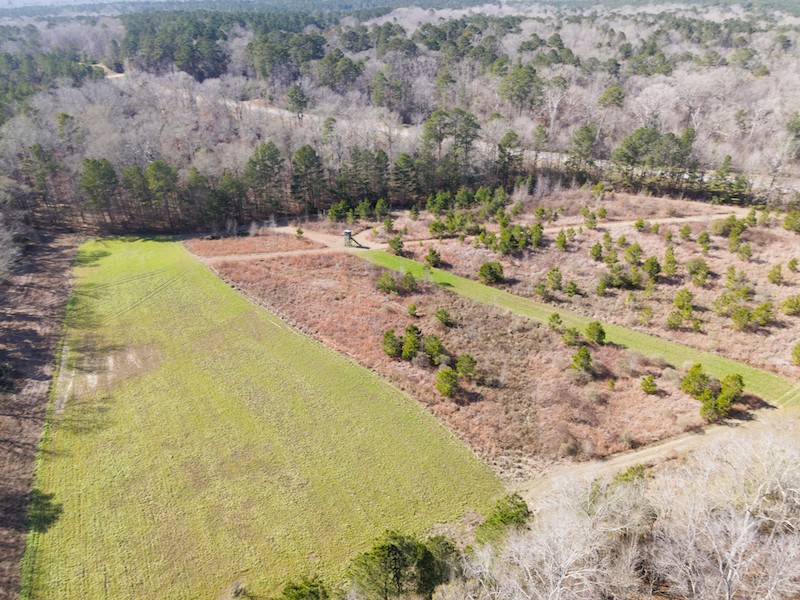 The land itself is outstanding, with rolling hills giving way to hardwood-lined creek bottoms. The north side of the property showcases some of the most impressive hardwood timber you will see, with abundant red and white oaks throughout. There are approximately 30 M/L acres of pine timber that could be thinned, offering future income potential and the ability to enhance bedding habitat. Wells Creek runs through the southwest portion of the property, providing a year-round water source for wildlife and a great place for family recreation during the warmer months.