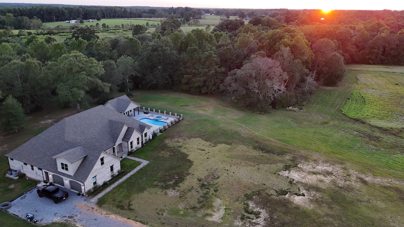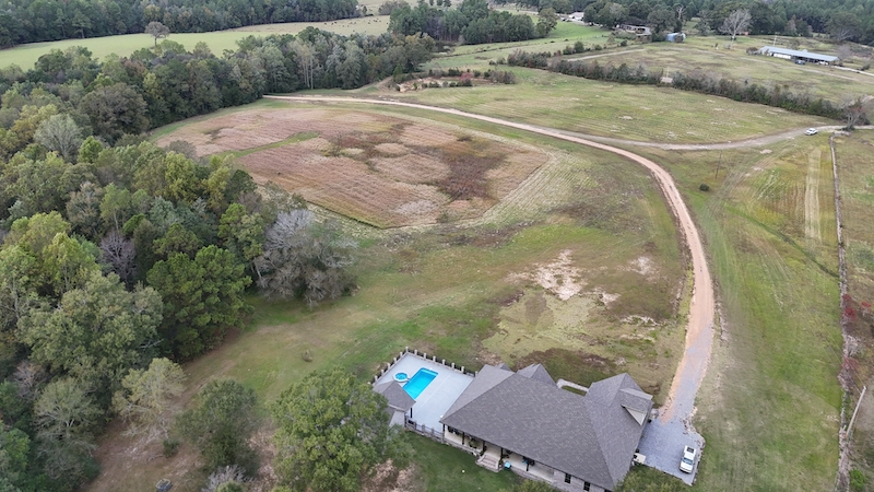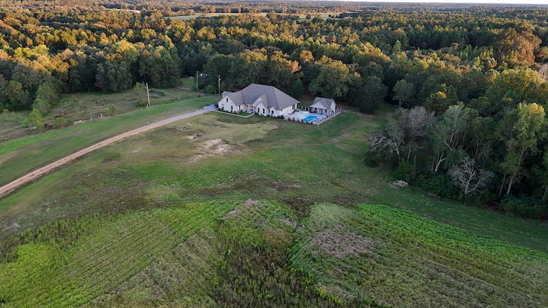 This property offers a diverse combination of land types and established improvements that support residential use alongside agricultural and recreational opportunities. The acreage includes open pasture, wooded sections, and multiple homes and outbuildings arranged across the property, providing flexibility in how the land and structures may be utilized. Access is provided by a long private driveway with gated entry, creating separation from the public road and leading to the main residence. The recently built custom home is positioned near mature oak trees that produce acorns seasonally. These trees and others on the property provide a natural food source and cover for wildlife, including deer and turkey, which may be observed on the property from the house, large porch, and pool area. The main residence is complemented by a pool and spa, along with a pool house that includes a full bathroom. These features support outdoor living and provide additional functional space for daily use or hosting guests. A separate guest house is also located on the property, offering additional living quarters that may be used for extended family, visitors, or other purposes. Several outbuildings are located throughout the property, including multiple storage structures. These buildings provide space for equipment, vehicles, tools, livestock needs, or general storage. The land is partially fenced and cross-fenced, which supports pasture management, livestock rotation, or separation of land uses. The mix of open ground and wooded acreage creates a varied landscape that supports agricultural use as well as recreational activities and hunting. This property presents an opportunity for a family compound-style arrangement, a mini-farm setup, or a combination of home and recreation. The total acreage amount can be adjusted and surveyed as desired, pending approval from the appropriate authorities. A pre-approval letter or proof of funds is required prior to scheduling a showing.