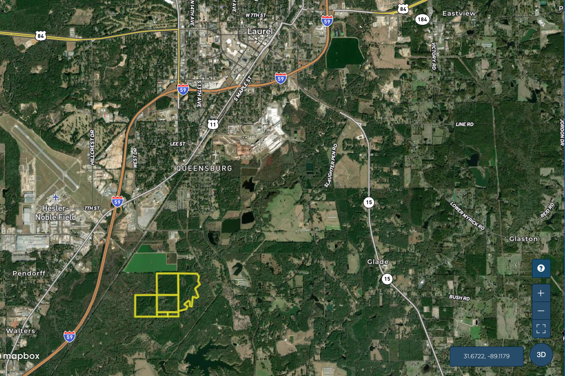 - 30 +/- miles from Hattiesburg