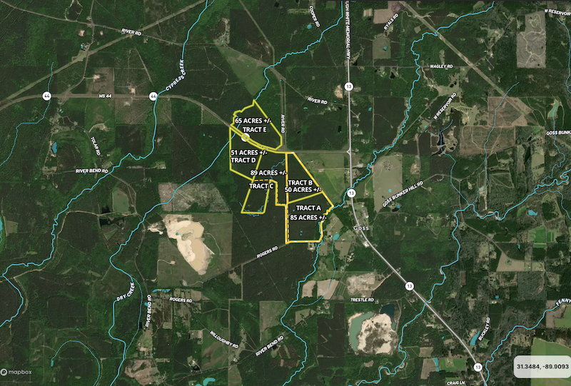 This tract offers outstanding hunting with quality deer harvested in the area every year. It features great road frontage, power and water at the road, and multiple homesite or cabin site options. The property includes good pine timber for long-term value and sits in a highly desirable area. Located near the Pearl River with a public boat landing nearby, it’s an ideal recreational and investment opportunity.