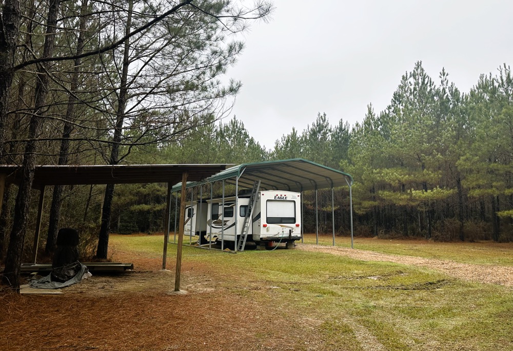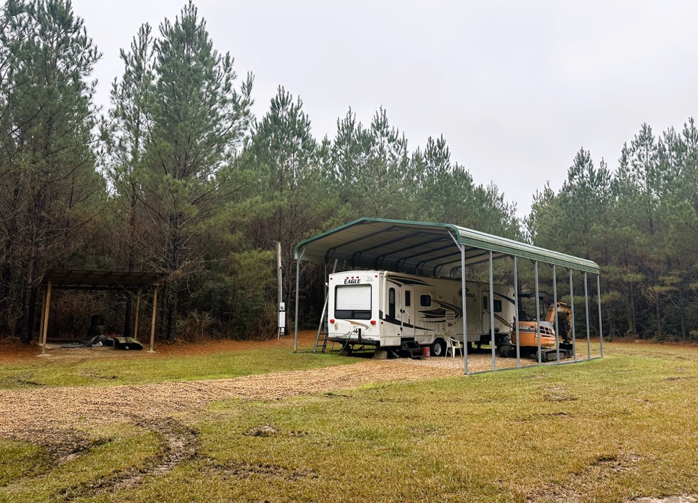 - Developed campsite with driveway and metal carport