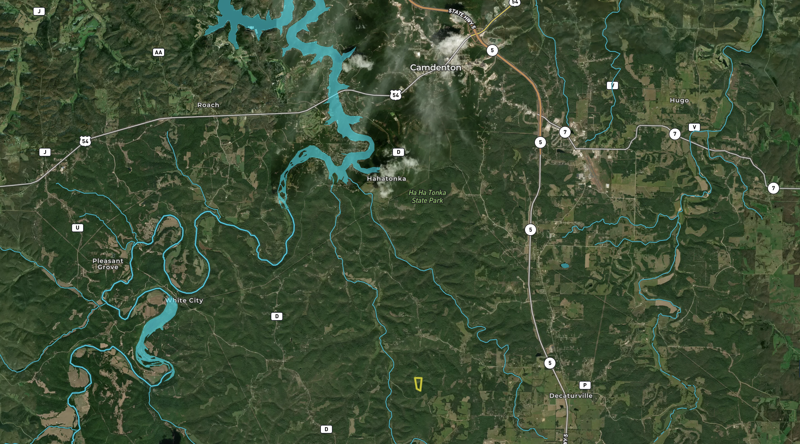 All wooded building tract near Lake of the Ozarks with excellent long-range view. Electricity is very close to the property. Great view and mature trees.