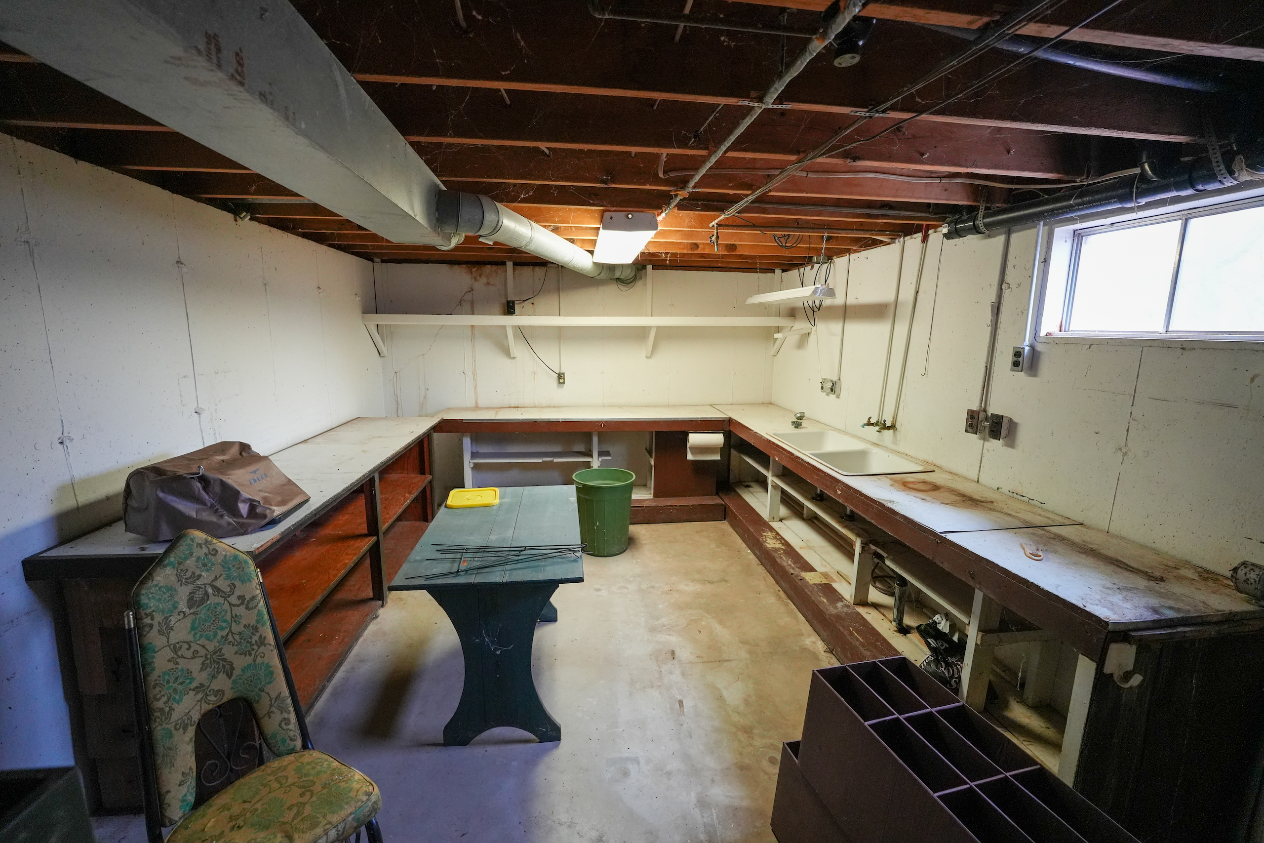 - Large unfinished basement with work area