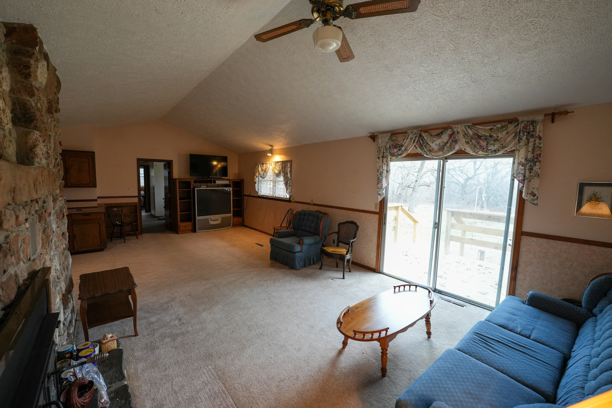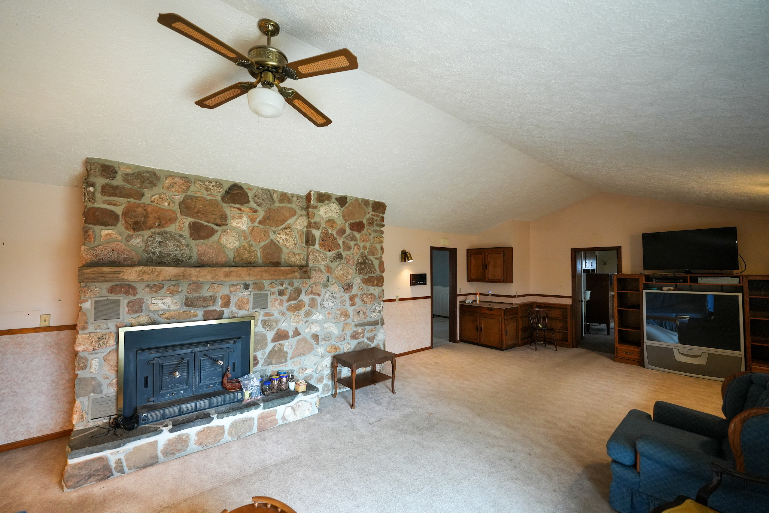 - Wood stove, fireplace, central heat and air