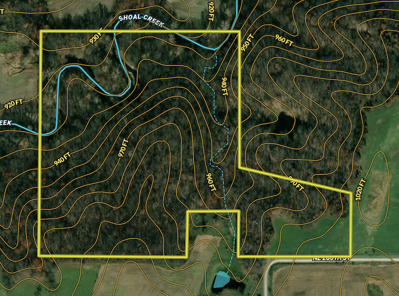 Escape the city to this buildable tract with excellent hunting near Turney. Utilities are available at the road to build your new home or set up the hunting camp of your dreams. Located 12 minutes from Lathrop, 20 minutes from Cameron, and 30 minutes from Kearney, convenience is in every direction. Miscanthus grass has been planted along the road for screening to enhance the privacy. Follow the trail system from the build site to everything this property has to offer. Frontage along Shoal Creek provides a supreme wildlife corridor and a year-long water source. An isolated chunk of acreage across the creek sets up as a major pinch point and an adventure for the hunter who likes bulletproof access. The diverse terrain, including a major ridge point and a wet weather creek, along with the improvements on this property, pull bucks in and make them want to stay. Bottomland timber with calculated clearings provides great bedding cover and staging areas. Upland hardwoods that have been logged with longevity in mind make for excellent wildlife habitat, promote a healthy forest, provide tremendous beauty, and retain a promising future for continued lumber harvest. The property comes with a custom ground blind placed downwind of neighboring ag fields, ready to intercept the hungry deer moving from cover to food. Contact Land Specialists Dustin Williams or Jason Patterson for a showing today.
