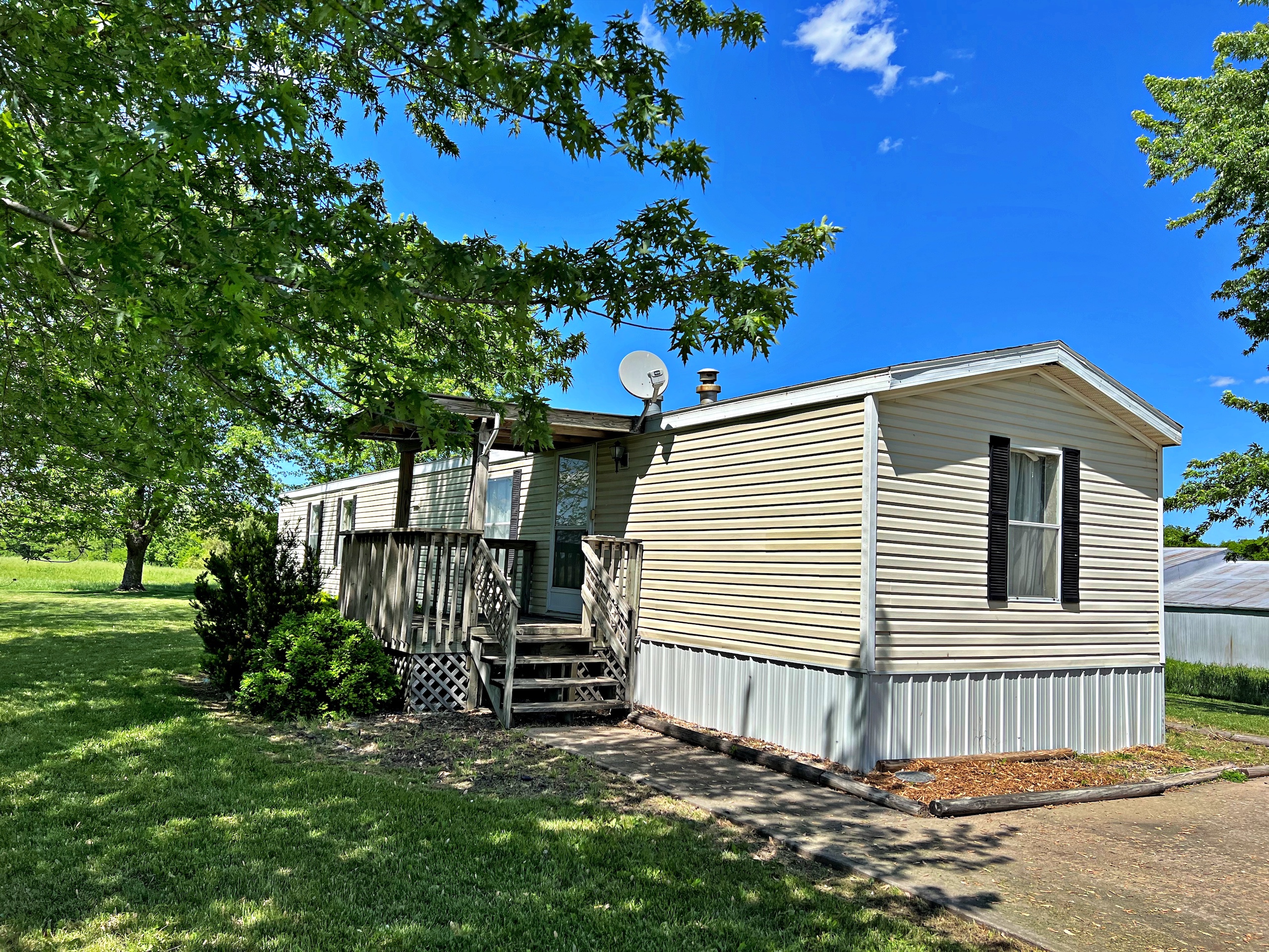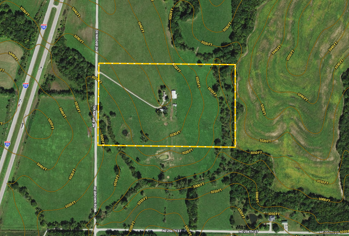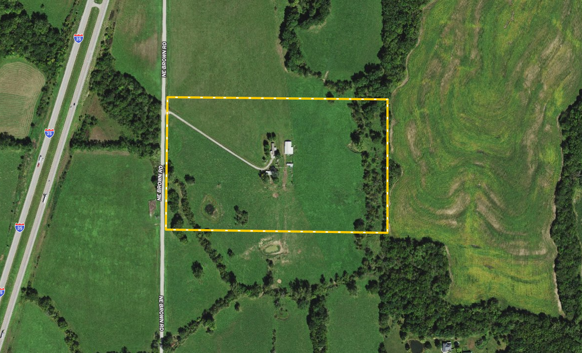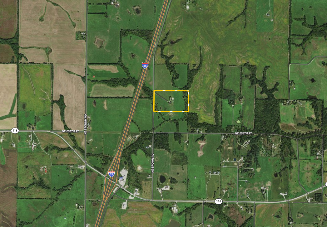 Presenting an affordable opportunity for country living with room for your livestock, and it’s only ½ mile from 116 Highway and less than 1 mile to Interstate 35. The home is a 90’s model single-wide with 2 bedrooms, 2 bathrooms, a living room that opens into the eat-in kitchen, plus a mudroom added onto the backside. The home has been served by a water well, plus the current owners made arrangements to have a water meter set on the property. Just outside the home is a large tin barn and a storm cellar. The farm consists primarily of open grassland with gently rolling terrain that has been used for hay production and pasture. The grassland scenery is complimented by beautiful mature timber along the east fence line, including towering cottonwood trees, plus some hardwoods like oak and walnut. Two main water sources, a small pond and a seasonal creek provide water for livestock and wildlife. This property would be a great place to build a dream home, with several potential building sites around the farm. This tract is being split from a larger parcel. A survey will be required to determine exact boundaries and to create a legal description. Please call, text, or email today for more information or to schedule your private tour.