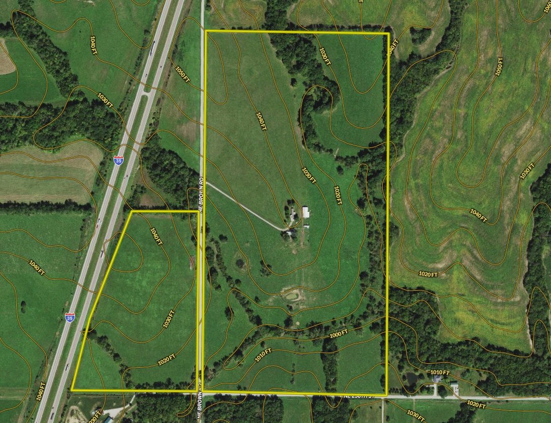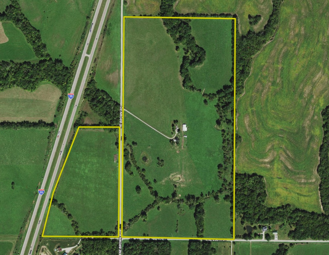 This scenic hay and pasture farm presents quality soils and an array of options to develop and/or divide, situated in a great location. The property is less than a mile from the interchange for Interstate 35 and Highway 116, which means you’re less than 40 miles away from Kansas City International Airport, or Downtown Kansas City. The property lays in 2 tracts that are separated by NE Brown Rd, with several additional access points from NE 256th St. There are good potential building sites located throughout the property, allowing for numerous divide options. Fences and cross fences on the east parcel range from good to fair, with plenty of water holes for livestock. The west parcel is partially fenced. While most of the land is currently used for pasture and hay, there are also some nice areas of timber and brush that support wildlife, including deer, birds, and small game. Older improvements on the farm include a barn and two older trailer homes that have not been occupied for some time. One of the trailers is used for storage, while the other might be a renovation candidate for a residence. This private property is shown exclusively by appointment only—call, text, or email with questions or to schedule your private tour.