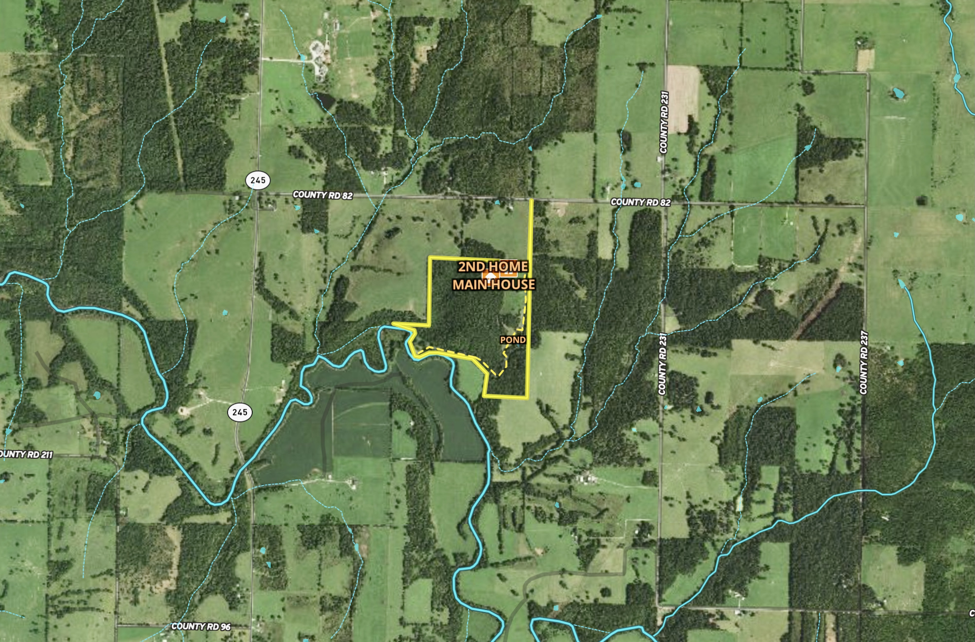 Big Game, Small Game, Creek, Recreational Improvements, Trail Network, Internal Road System, Shop, Seller's Mineral Rights Convey, Fish, County Road, Gravel, Partial Fence, Pasture, Hunting, Low Fence, Pond (0-3 acres), Wild Game, Whitetail, Other Game, Turkey, Waterfowl, Duck, Geese, Waterfront, Frontage, River, Improvements, Infrastructure Improvements, Building Improvements, Investment, Catfish, Bass, Panfish, Roads, Road Frontage, Road Access, Fence, Low, Fence Material, Wire, Tillable / Production Acres, Hardwood Trees, Softwood Trees, Housing, Home, Utilities, Electric, Propane, Septic, Internet, Area Features, Public Hunting, Boat Ramp, Public Fishing, Public Access Area, Marina, RV Park, Camping/Campground, Golf Course, Airport, Activities on Property, Fishing, Hiking, Boating, ATV Riding, Horseback Riding, Camping, Family Activities, Biking, Wells/Pumps