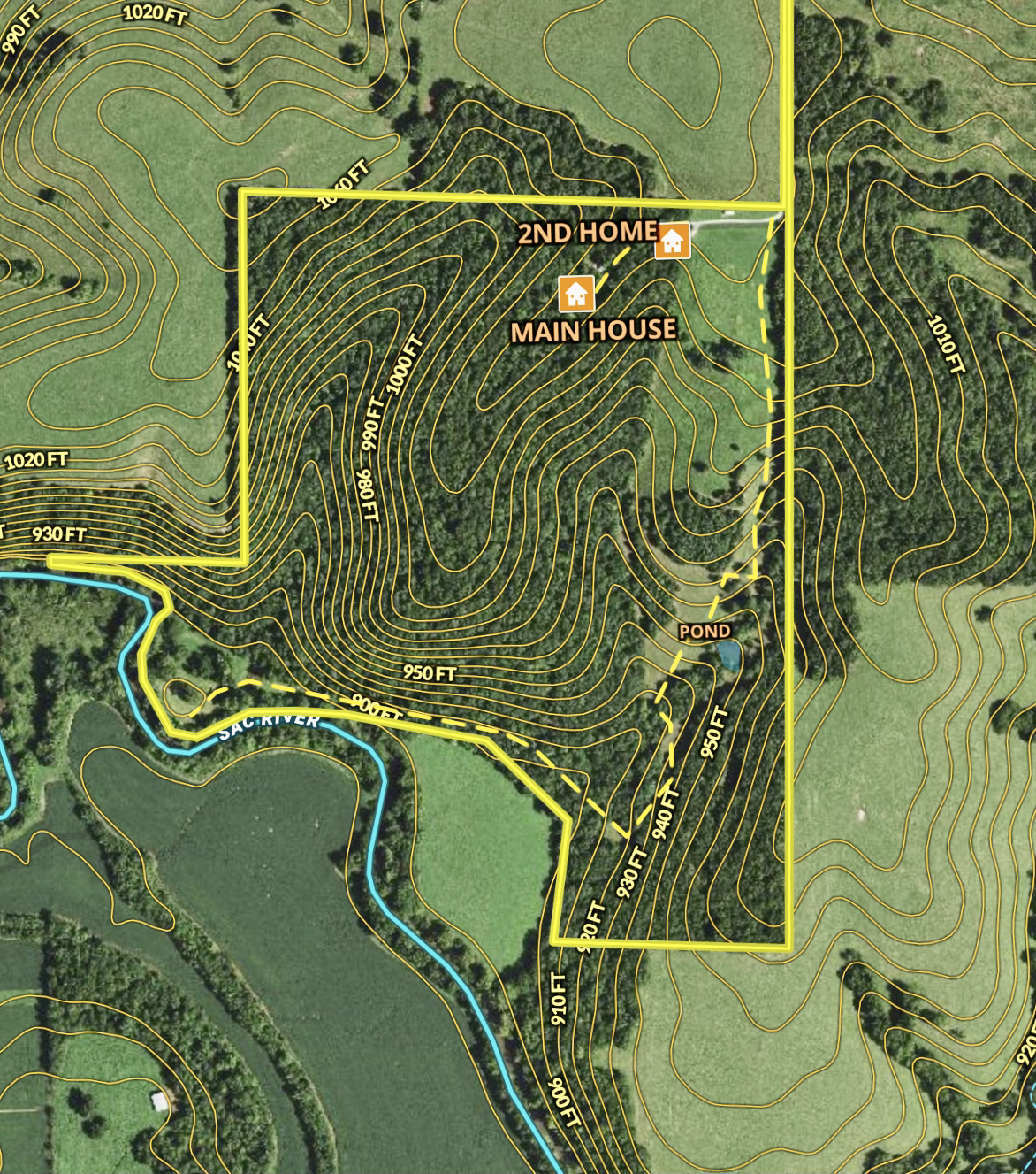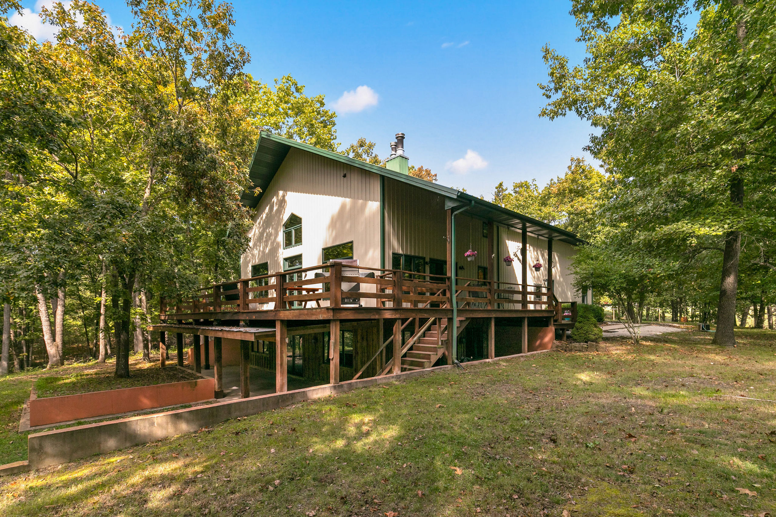 This unbelievable legacy land nestled along the Big Sac River in the beautiful Ozark foothills will welcome you home. The estate consists of two homes. The rustic two-story main house is open concept with soaring 20’ ceilings. The primary level consists of the living/dining area, large open kitchen, pantry, half bath, and mud/laundry room. The loft is multipurpose including an office/bedroom, a full bathroom, and a custom Murphy bed. The lower, walkout level consists of two bedrooms, one the master suite, office/sitting area, wood burning fireplace connected to the HVAC system and capable of heating the entire home, and a bunker/safe/storage room. The appliances and A/C are electric while the furnace and hot water are propane. The 45’ x 40’ attached garage has 12’ overhead doors for vehicles, campers, and any other toys you can imagine. The second home has a more contemporary feel. All on one main level and consists of living area with fireplace/woodstove, beautiful kitchen with high-end finishes, master with ensuite and a second bedroom, bath. There is a two-car garage and utility room. The home is all electric. The new 40’x50’ shop has everything you need; a concrete floor, insulated walls/ceiling, excellent lighting/electric, and three big entrance/exit doors. The grounds have been meticulously groomed and maintained to perfection. Views from the homestead are unparalleled and enjoyed at any point in the day or year. The land offers unlimited recreational opportunities with two ponds and access to the Big Sac River for fishing, swimming, and kayaking. There are also excellent deer, turkey, waterfowl, and small game hunting opportunities. Established mountain bike and four-wheeler trails are found running throughout the mature hardwood and softwood timber. There are roughly 19 acres of open pastures for horses or other livestock. To top it all off, it is a short drive (approx. 3.5 miles), or float via the river, to Stockton Lake, which offers 300 miles of unspoiled shoreline and 25,000 acres of clean, clear water for fishing and water recreation. The property accessibility via flight and proximity to urban areas including Springfield (30 minutes southeast), Branson (1 ½ hours south) and Kansas City (2 ½ hours north).