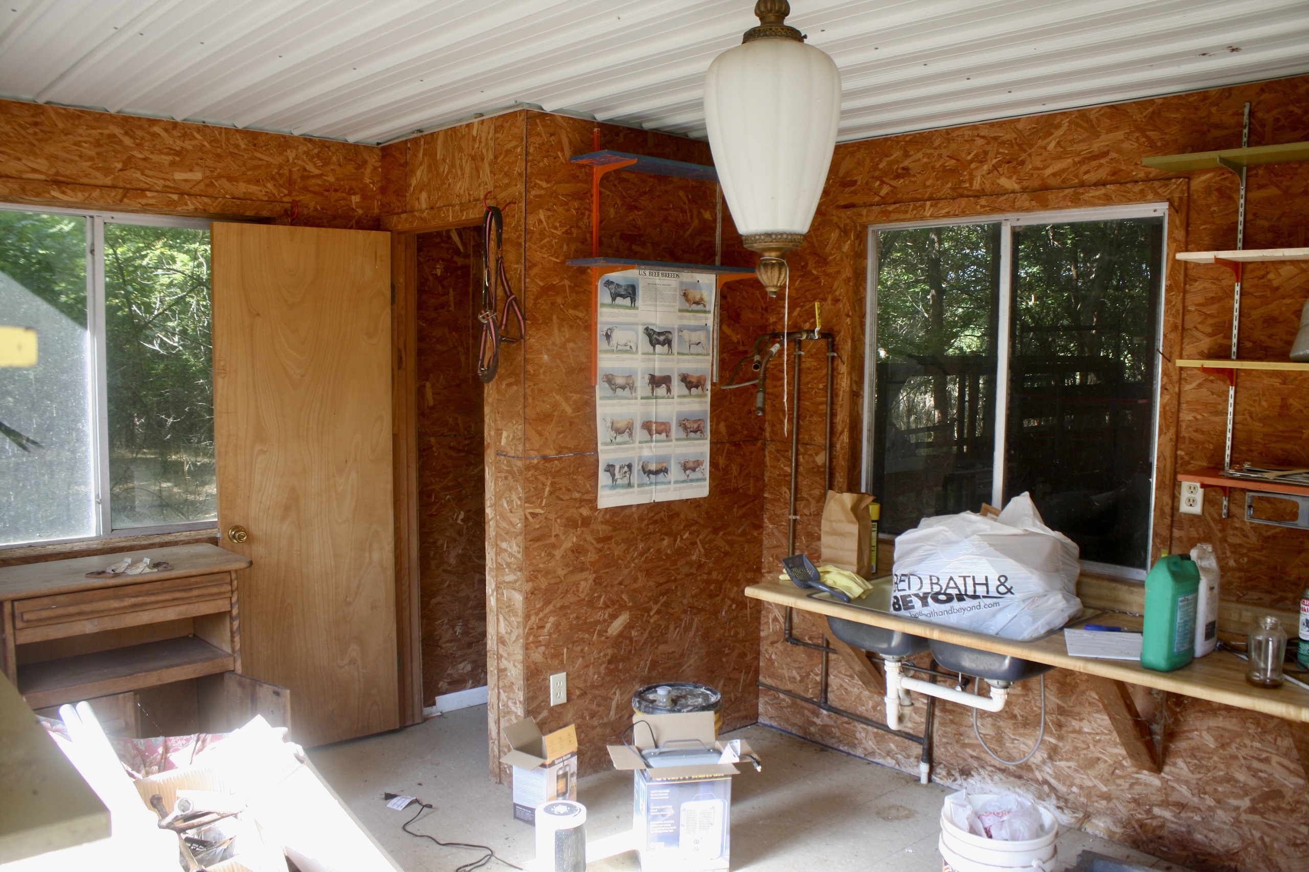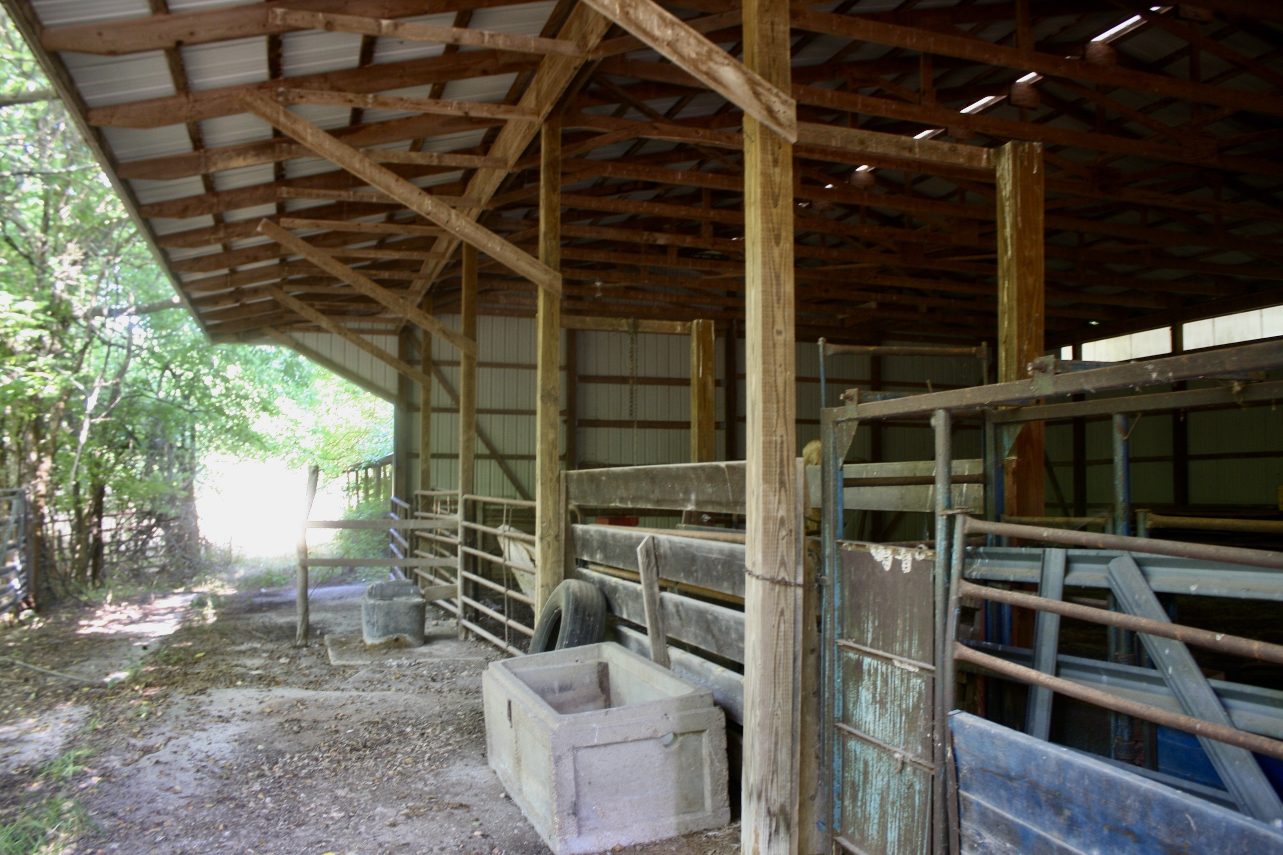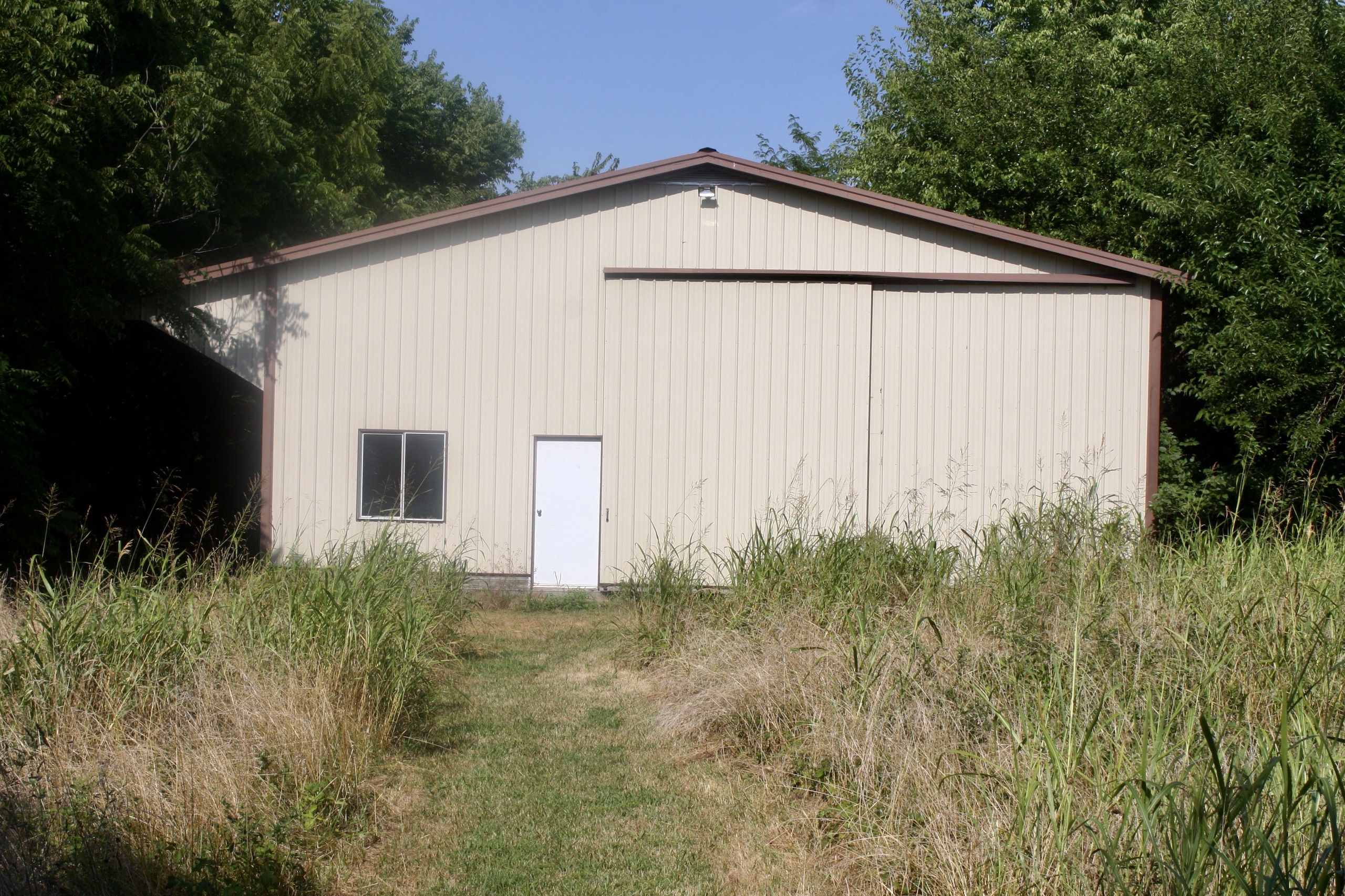 - 54’ x 72’ metal barn with insulated room, bathroom, 220 electric
