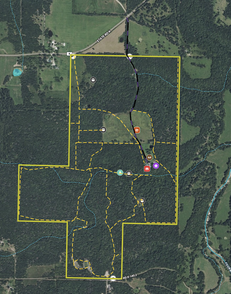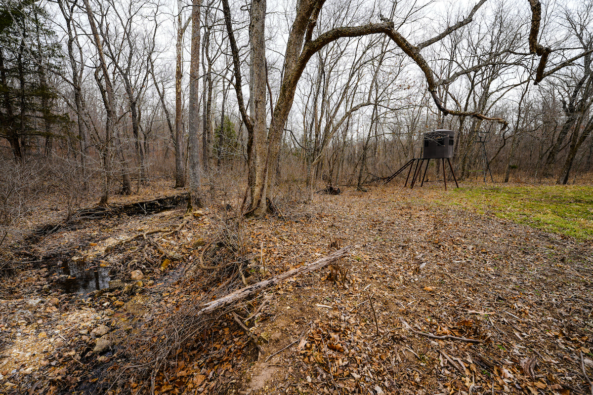 The land is what truly sets this property apart. Featuring mature timber, 40± acres of well-fenced pasture for horses or livestock, spring-fed creeks, ponds, and established food plot locations. Five Banks blinds convey with the sale, along with multiple wildlife feeders, offering a true turnkey hunting setup. With food, water, cover, and minimal intrusion, the ranch has produced multiple record-book bucks over recent years — a testament to its strong wildlife management and habitat. Over 6 miles of maintained trails and three gated entrances provide convenient access for hunting, horseback riding, hiking, or UTV use. The balance of timber and open ground creates a beautiful and functional landscape that is as enjoyable to explore as it is productive.