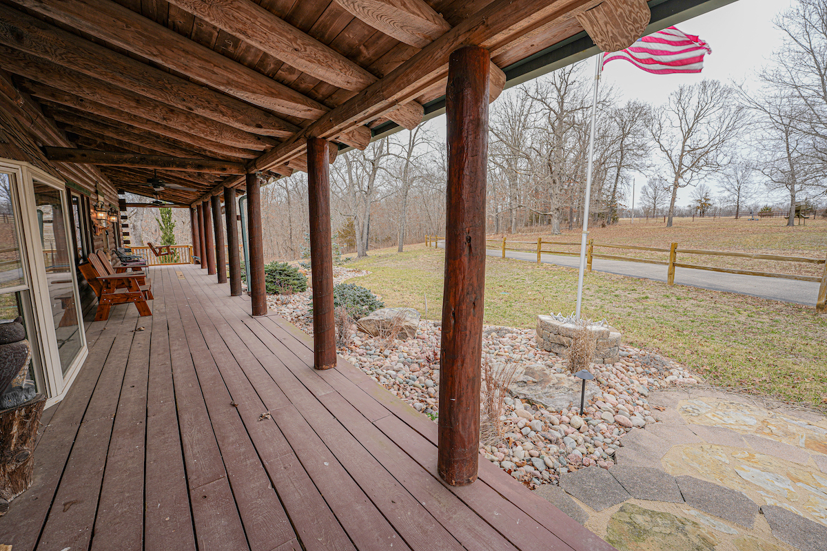 - 1,000+ sq ft covered porch overlooking hardwoods and meadows
