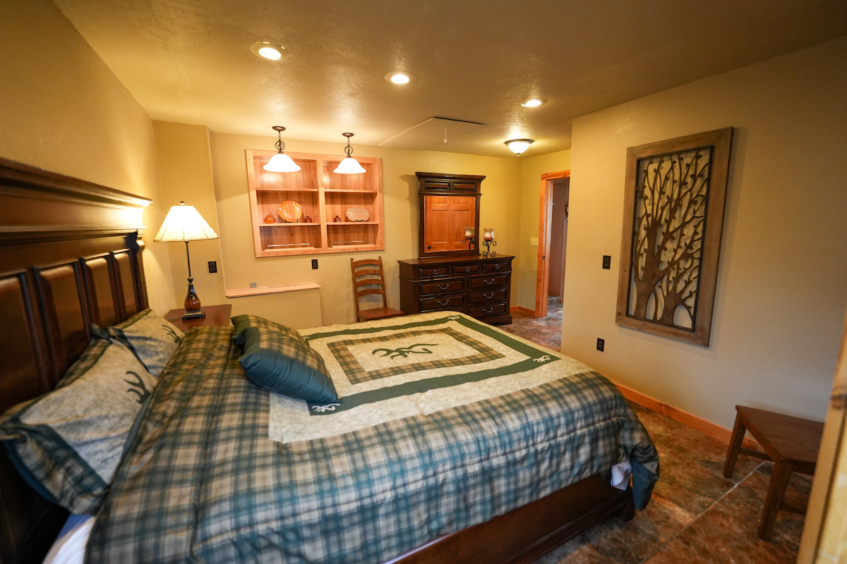 The 3,600 sq ft, five-bedroom, four-and-a-half-bath handcrafted log lodge is being offered fully furnished and turnkey. Designed for gathering, the main level features a gourmet kitchen that flows seamlessly into the dining area and two spacious living rooms, creating an ideal layout for entertaining family and guests. Upstairs, the loft and three bedrooms include a private primary suite complete with a walk-in closet, a jetted tub, and custom built-ins. The finished basement provides an additional large bedroom and a thoughtfully designed gear room with custom cabinetry for organized storage of hunting and outdoor gear. The home has a backup generator, spray-foamed attic, and low taxes and utility bills.