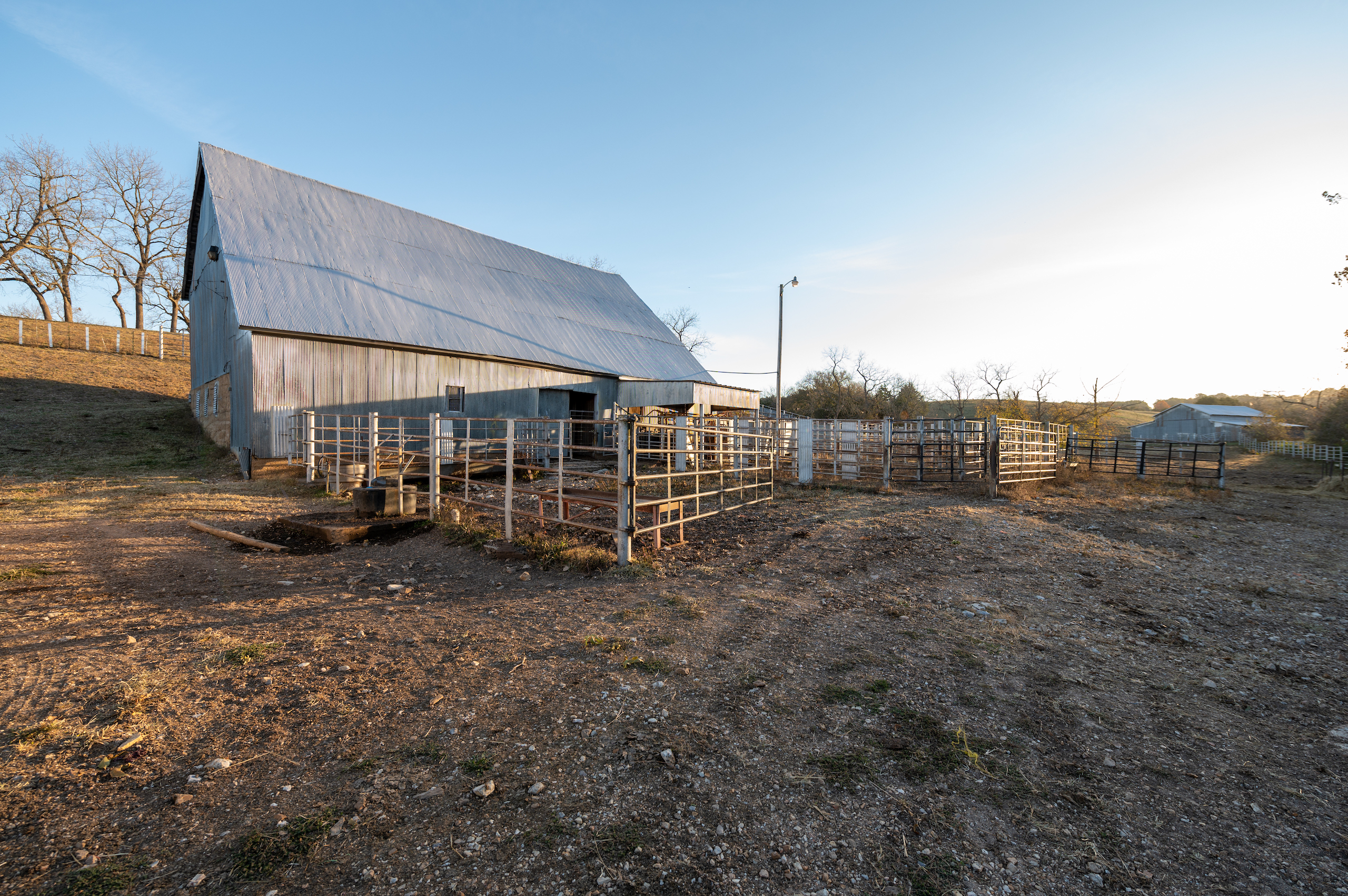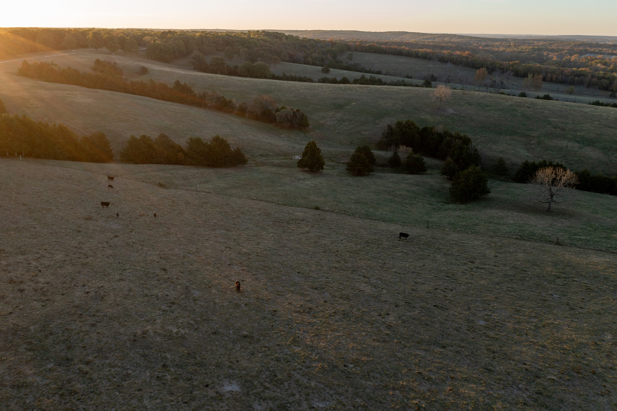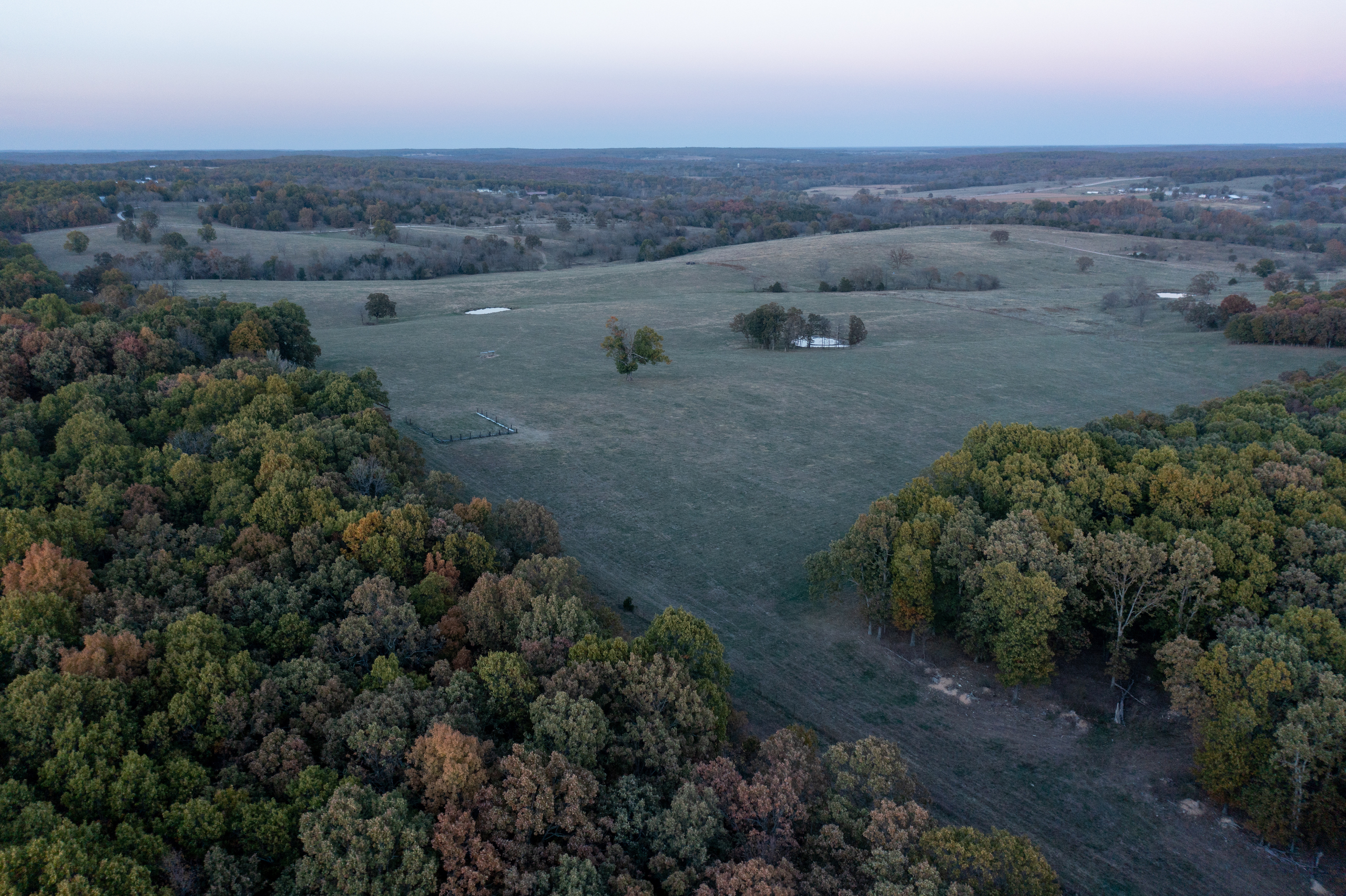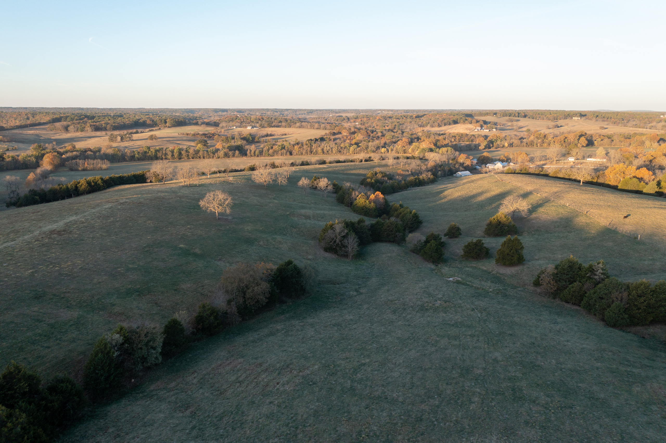 A 1272 square foot farmhouse sits atop a hill in the middle of the parcel, which is a great homestead for a ranch hand or guests to stay in the farm's headquarters. Atop the rolling Ozark Mountains is a great location for your future residence, with incredible 360-degree views of the beautiful terrain this legacy farm has to offer. You can see for miles with river bends, cattle farms, and beautiful sunrise and sunset skies in the distance. You also have a great building location on the front parcel with highway frontage, which can offer development potential.