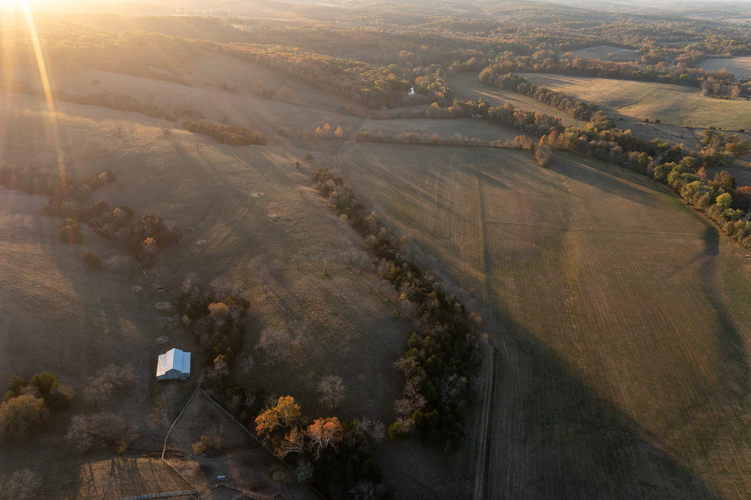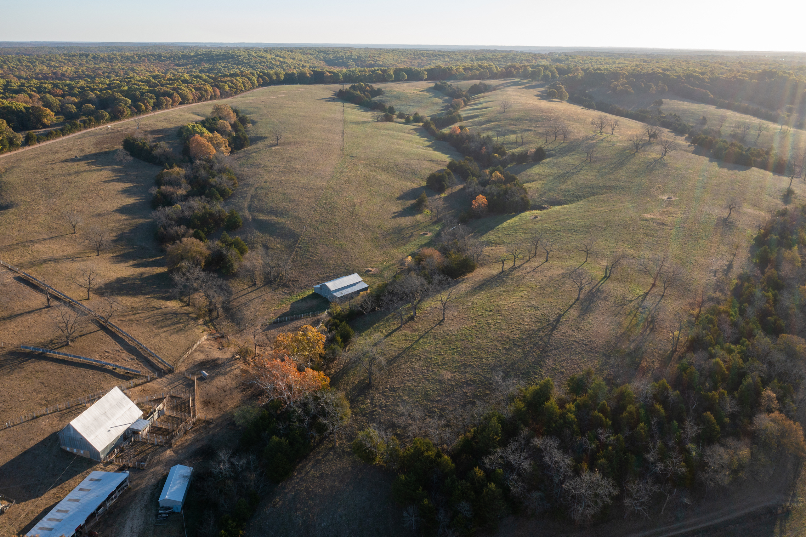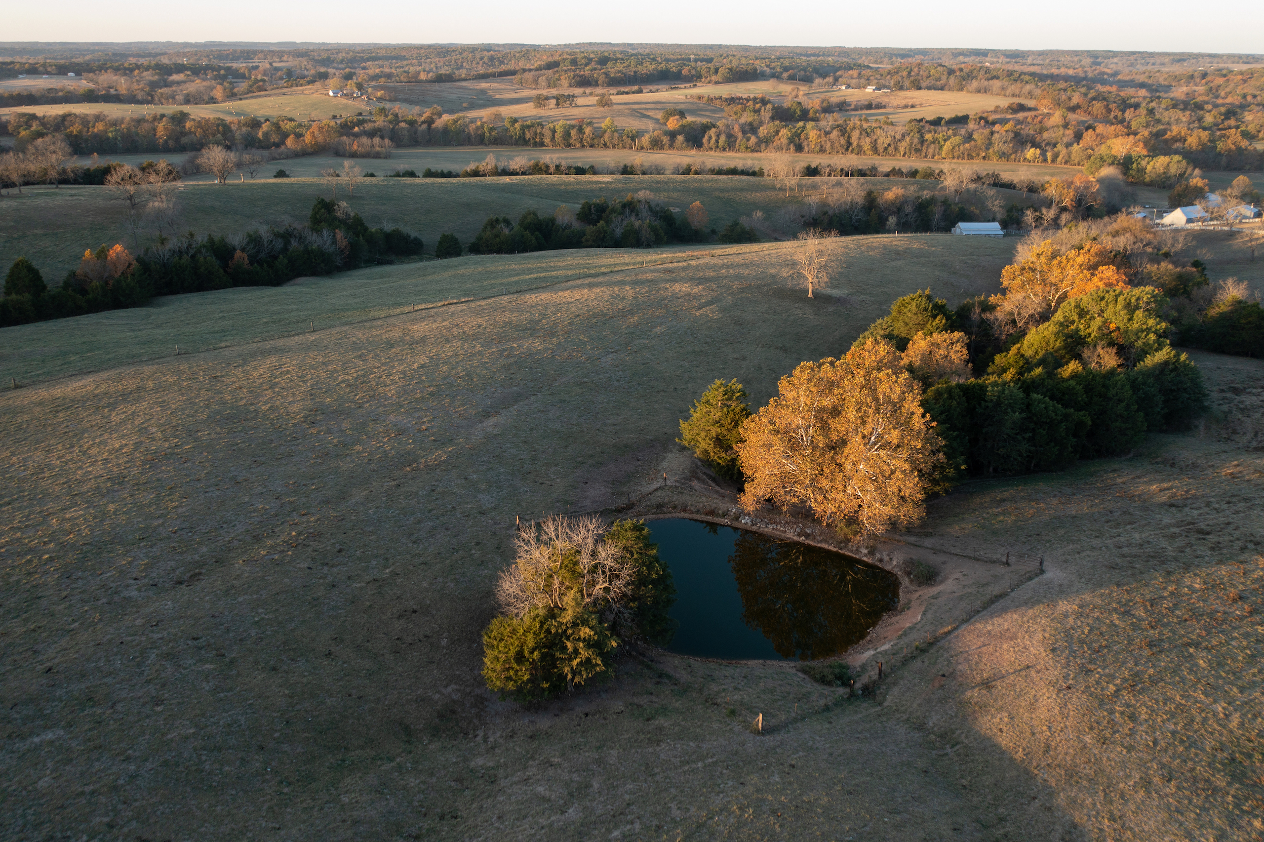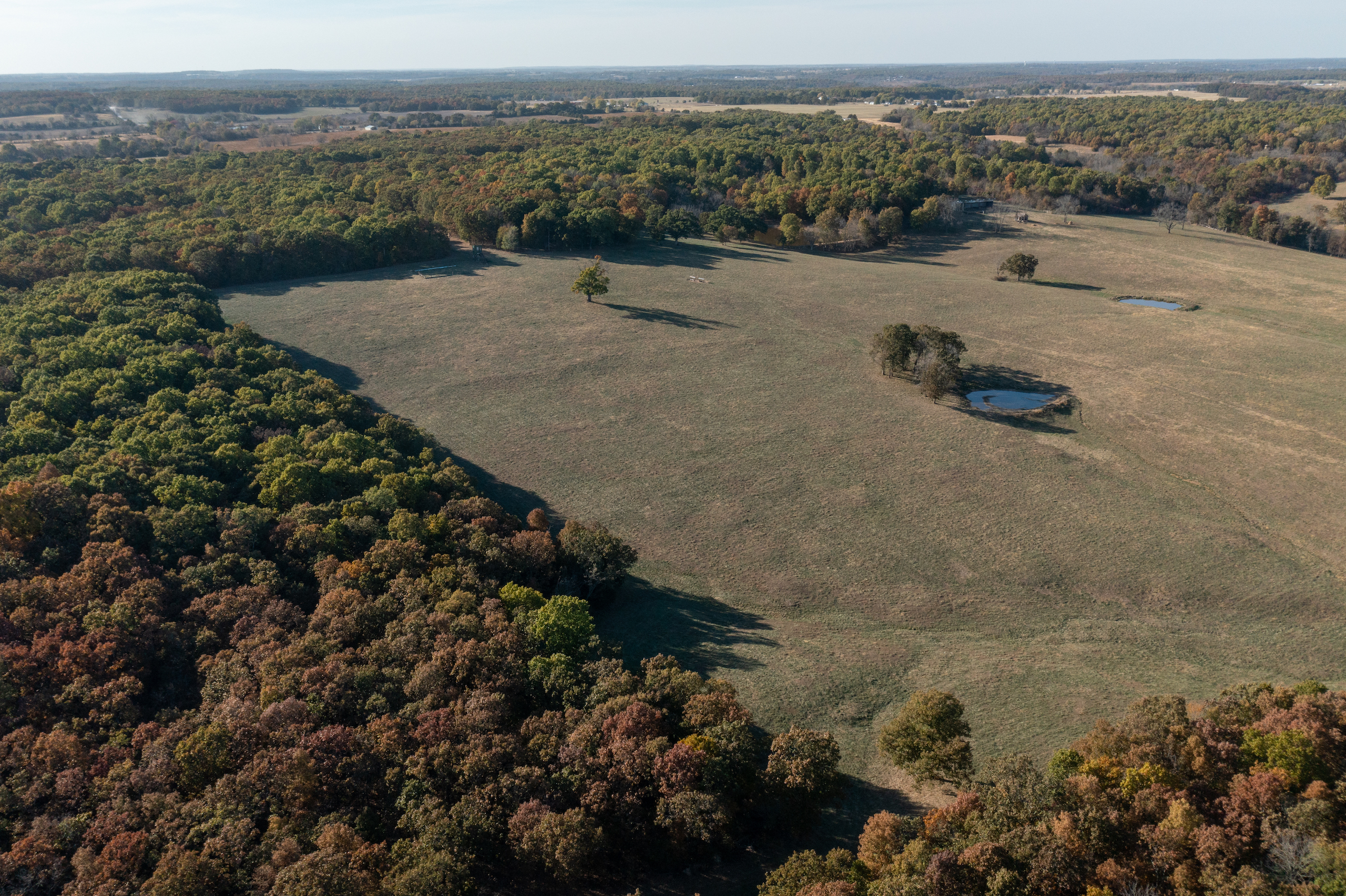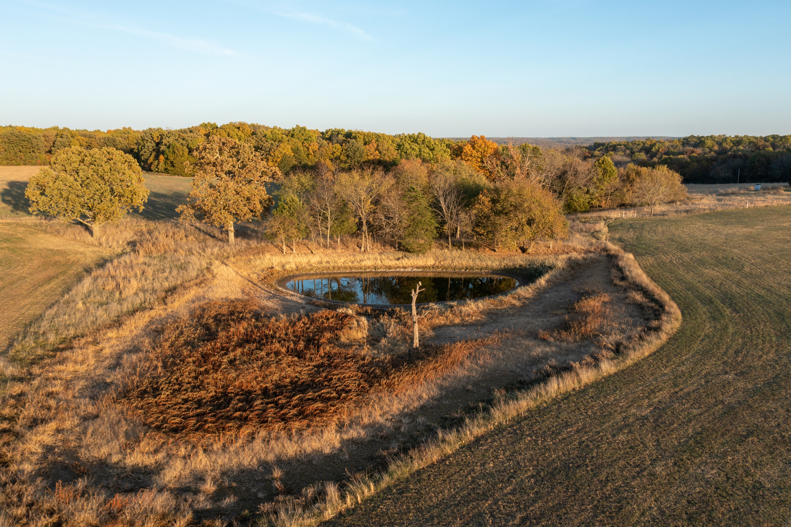 Life on the farm is best enjoyed outside. The property offers big game hunting in the draws and timber, as well as waterfowl and turkey hunting in the ranch's lower reaches. You can practice long-range shots and scout deer from miles away with a view of 75% of the farm from the highest elevation point. Take in what the Missouri land has to offer from your kayak you can launch from your very own bank and drift along undisturbed with multiple species of fish swimming below. There is an extensive internal trail system that you can experience from horseback, UTV, ATV, and hiking that will give you miles of trail time whenever you would like. As if the abundance of fun within the farm's fence lines isn't enough, Pomme De Terre lake is a half hour away.