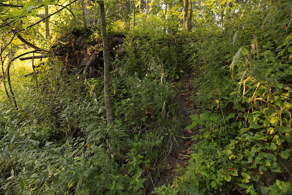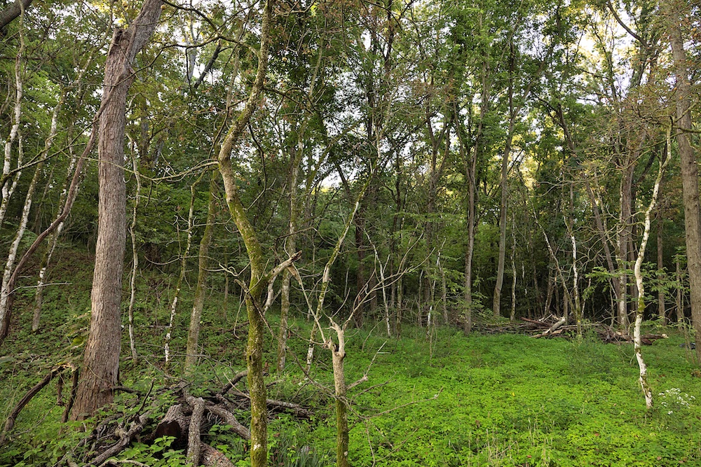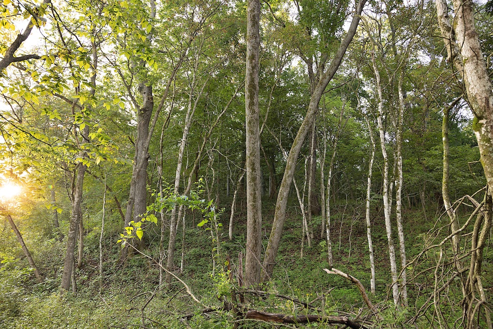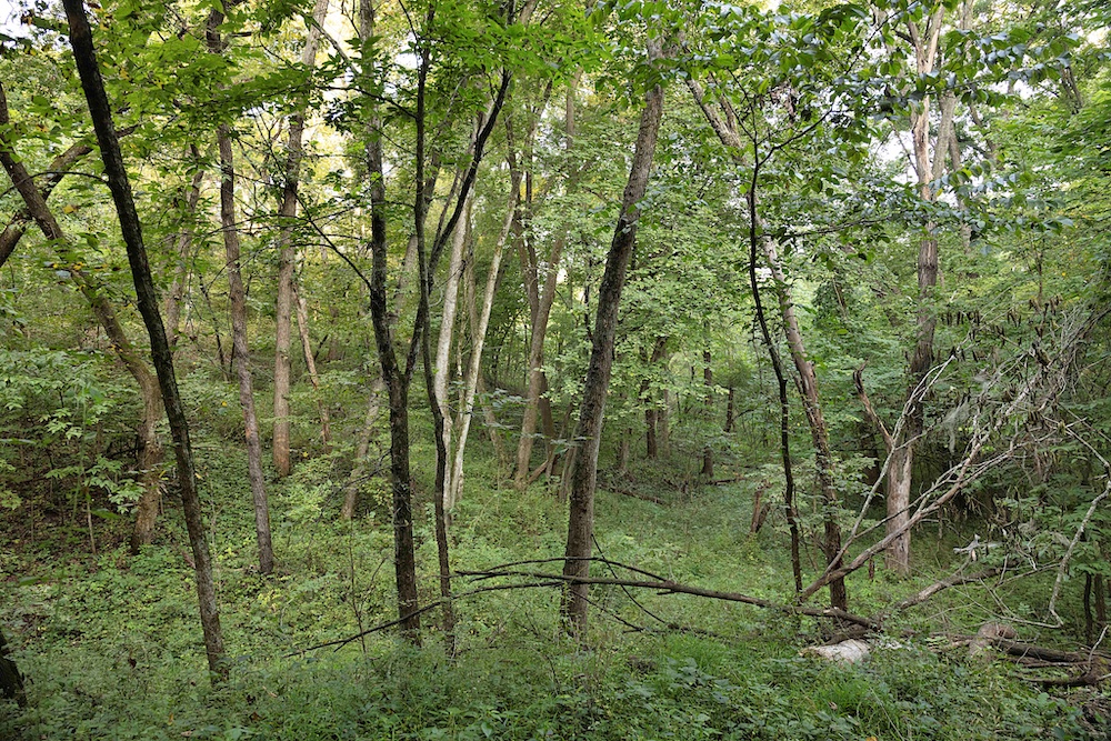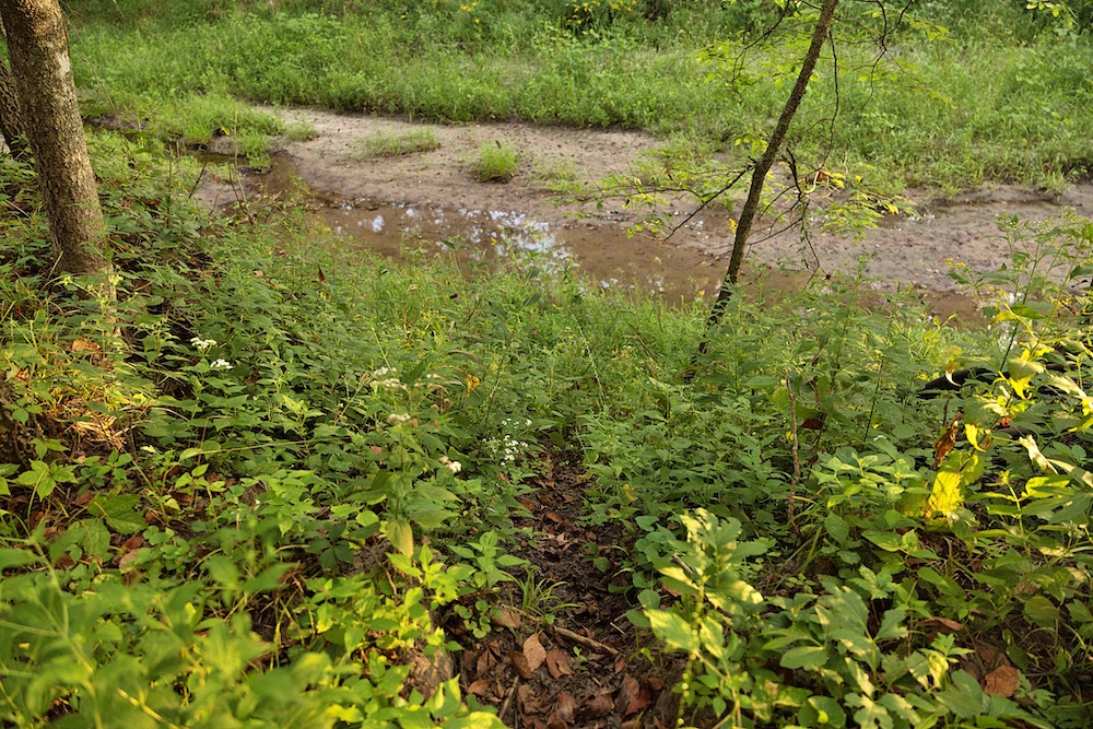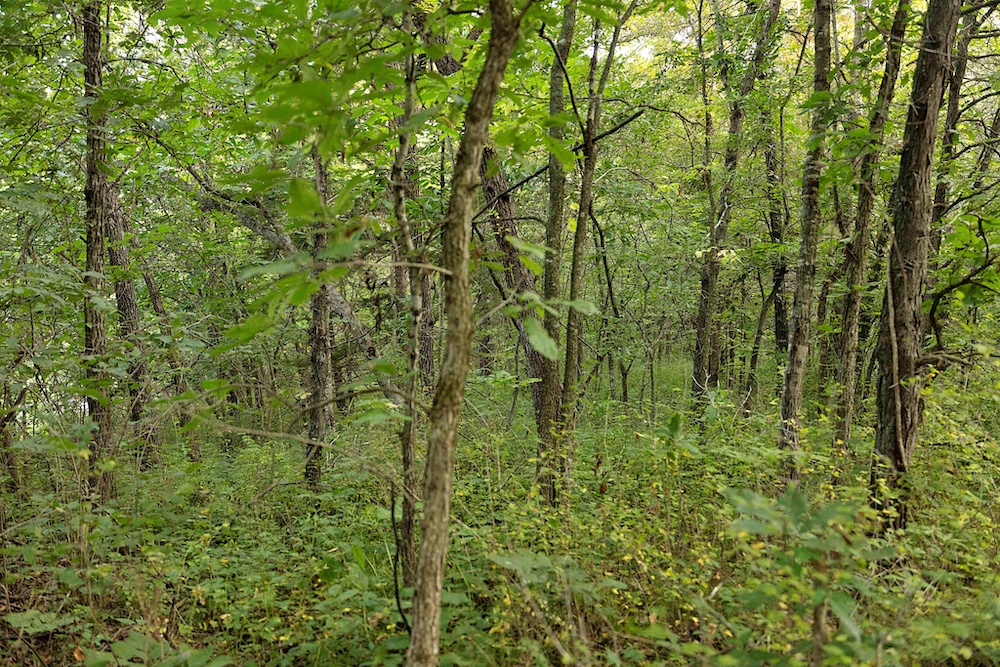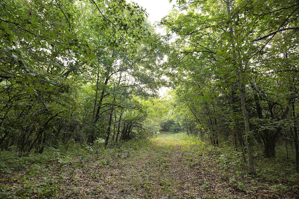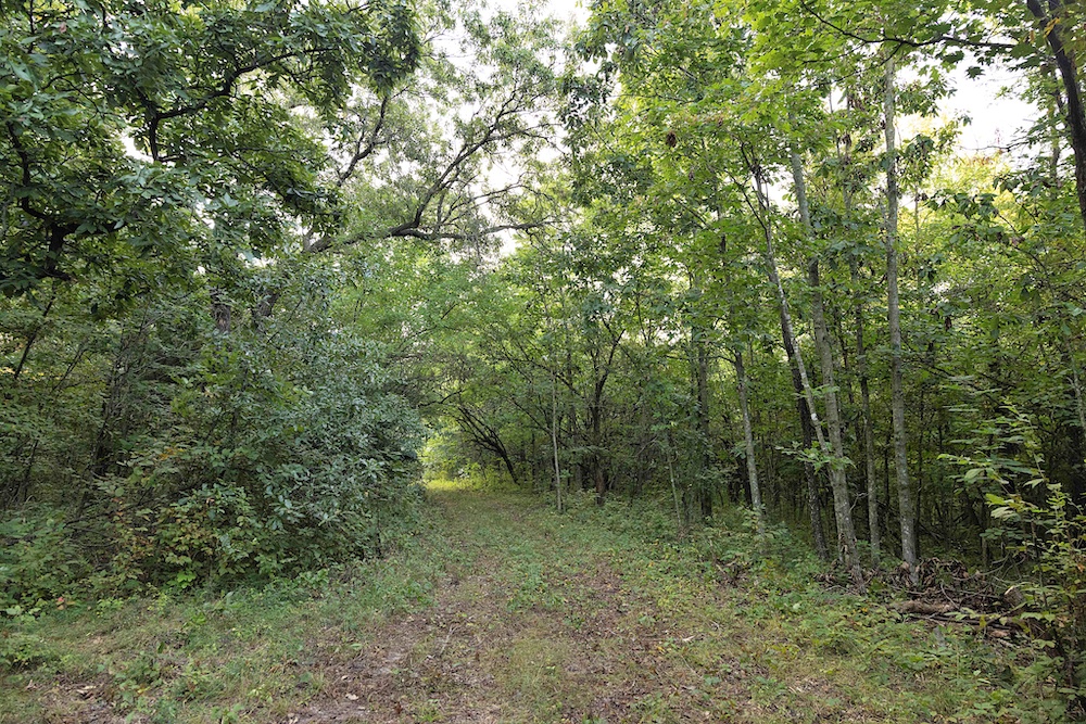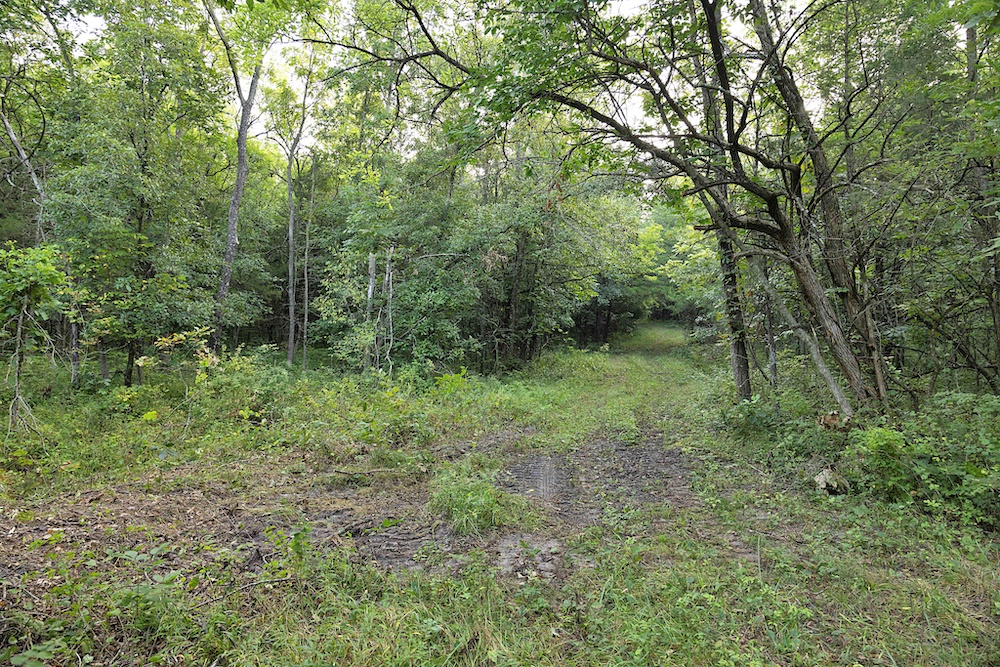 Most of the trail system is flanked by thick, brushy cover along the ridge, with impressive hardwood trees on the sidehills, creek bottom, and drainages. Hunters will appreciate the abundant oak species, plus other hardwoods like hickory, hackberry, locust and others. The combination of woody browse and hardwood mast supports a healthy deer population, something that this area is known for. In addition to the native food, there are areas that could be cleared for hidey hole-type food plots. A creek along the north boundary rounds out the habitat by providing a permanent water source for the wildlife.