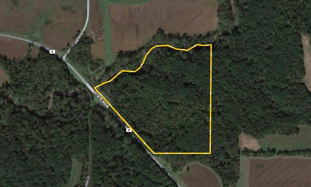 This wooded hunting land offers tremendous hunting for its size, thanks to the topography, habitat, trails, and the area in which it sits. Access is a key to any hunting farm, and this one is situated just east of Coffey on State Highway B. As you enter the property, the current owner has cleared a trail that begins at a small parking area near the road access. The trail then takes you down a ridge towards the creek near the northwest end of the tract. There's also another trail that travels up and across the main ridge, over to the east boundary.