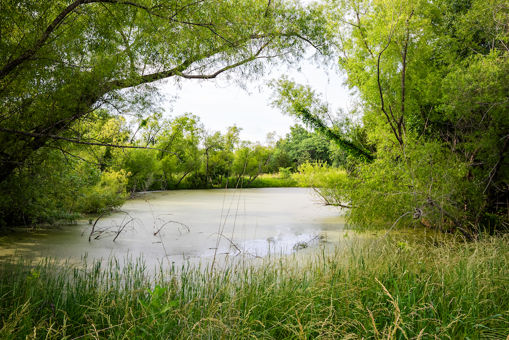 - Several ponds-one large, clear pond stocked with fish