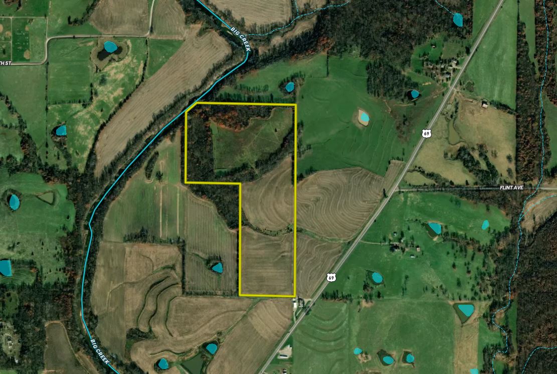 We’re proud to present this small farm that combines big hunting opportunities with significant income. 21 m/l tillable acres are cash rented to a neighbor for $3,465 ($165 per acre), while 12.9 acres of CRP generates another $1,788 ($138.58 per acre.) This is a combined annual income total of $5,253, which is over a 2% return at list price! The property also provides excellent hunting, which the current owners would be eager to lease the hunting rights back if a new owner doesn’t want to hunt it themselves. The north end of the farm sets up very well for bow hunting with beautiful hardwood timber, variable terrain, established food plots, mineral licks, bedding areas, heavy game trails, and frontage along Big Creek. More than just a deer farm, turkeys, upland birds, and small game also thrive here. This is a gem of a small farm that represents a rare combination of excellent outdoor recreational opportunities with significant cash return, all in one affordable tract. Do not wait to schedule your tour!