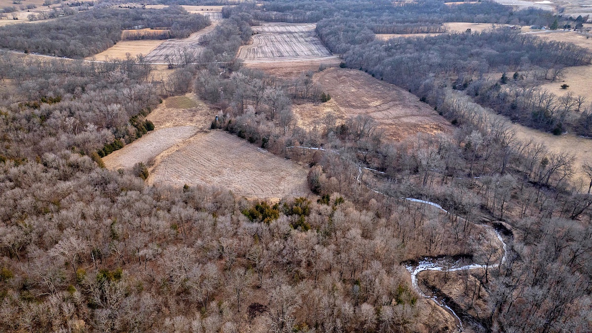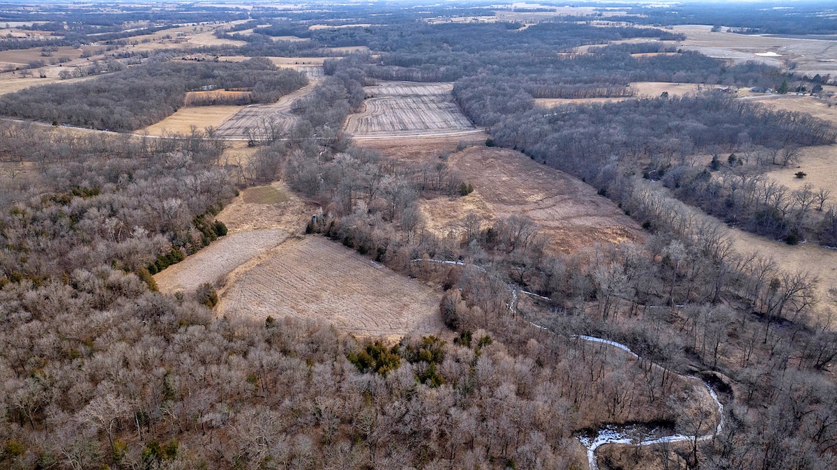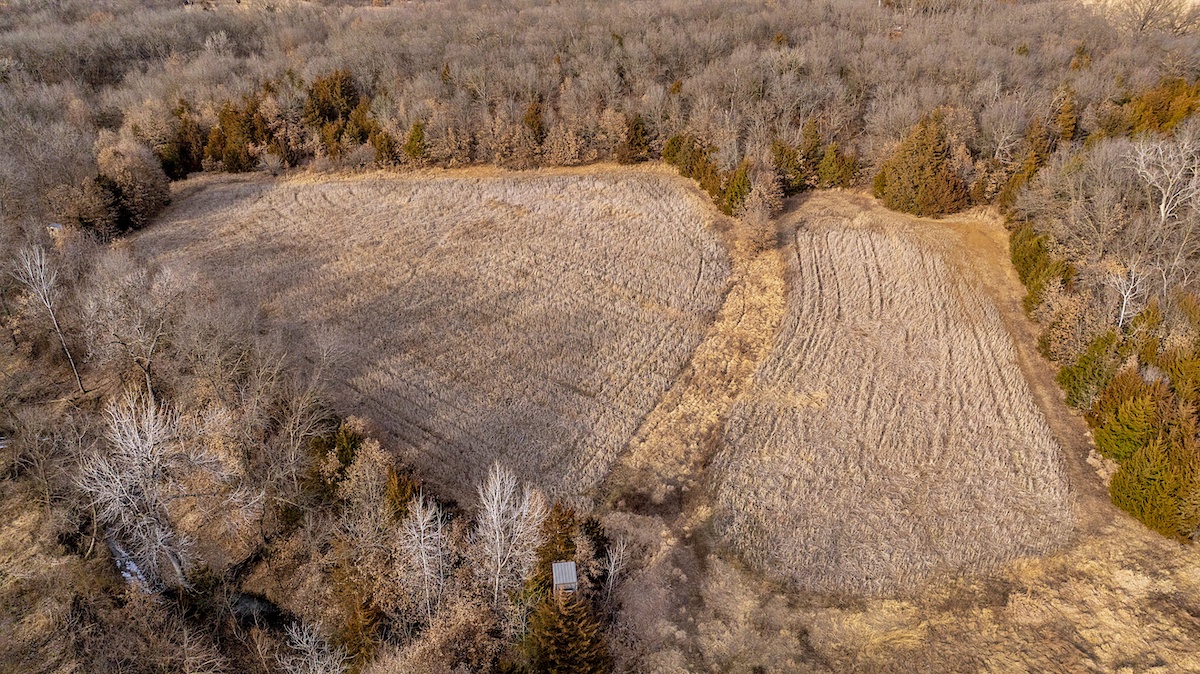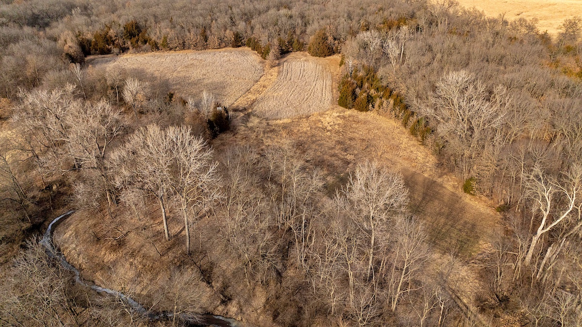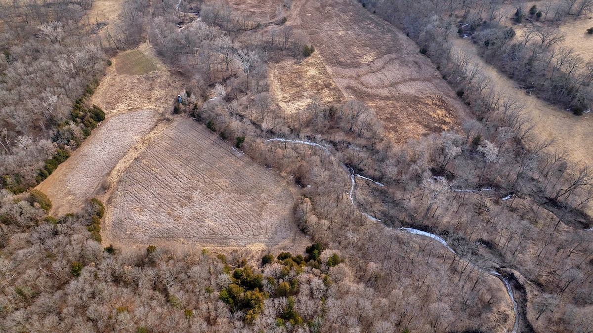 The farm is exceptionally well laid out for hunting, offering a diverse mix of habitats and benefiting from its position among several large blocks of neighboring cover. The wooded portions of the property feature mixed hardwoods with varying slopes, creating ideal deer bedding opportunities for nearly any wind direction. In the heart of the farm, several open fields are complemented by Mason Creek as it winds through the property, providing a reliable water source and stealth access for hunters. These open fields have been managed for wildlife habitat and include warm-season grasses along with both annual and perennial food plots.