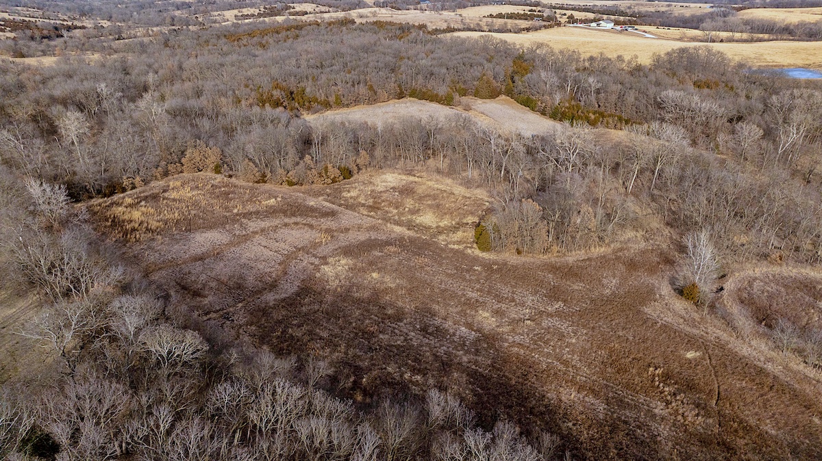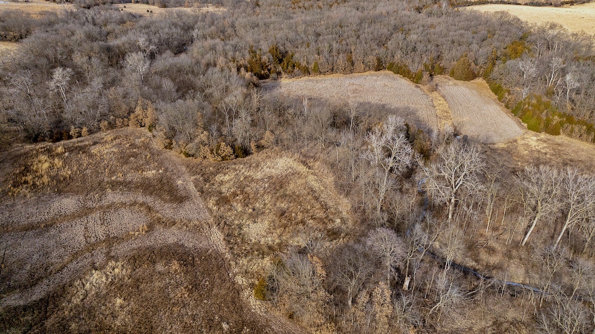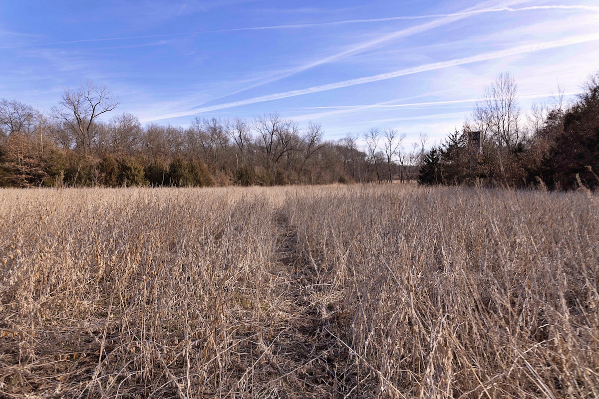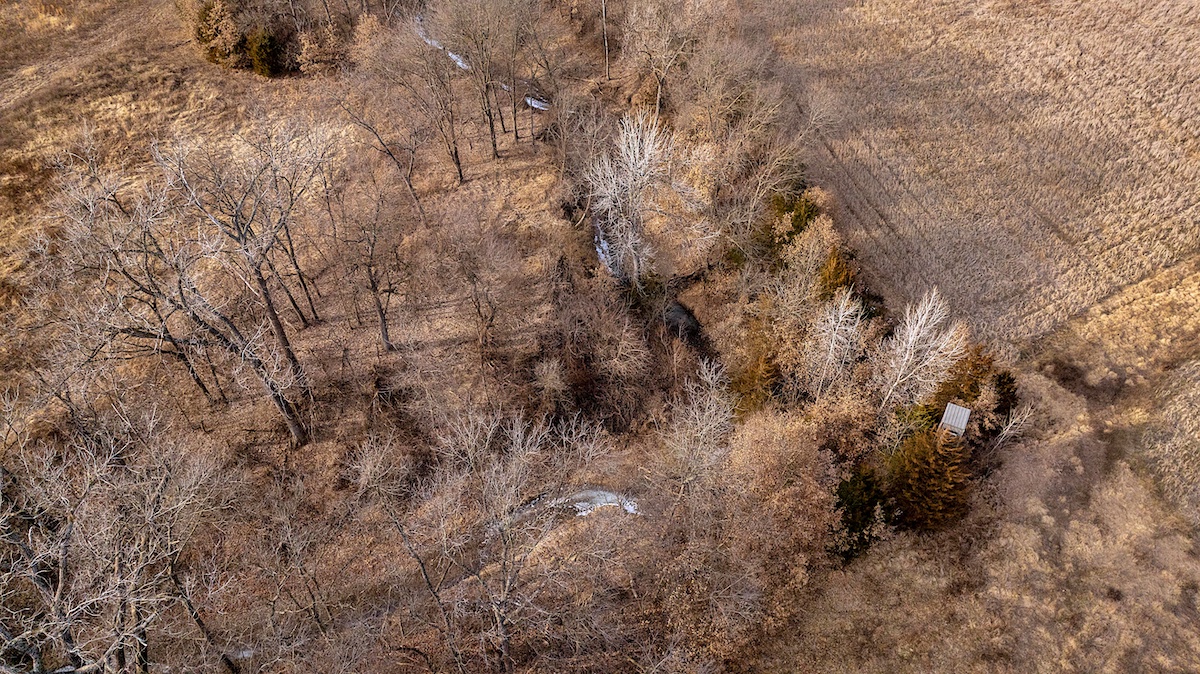 The farm is exceptionally well laid out for hunting, offering a diverse mix of habitats and benefiting from its position among several large blocks of neighboring cover. The wooded portions of the property feature mixed hardwoods with varying slopes, creating ideal deer bedding opportunities for nearly any wind direction. In the heart of the farm, several open fields are complemented by Mason Creek as it winds through the property, providing a reliable water source and stealth access for hunters. These open fields have been managed for wildlife habitat and include warm-season grasses along with both annual and perennial food plots.