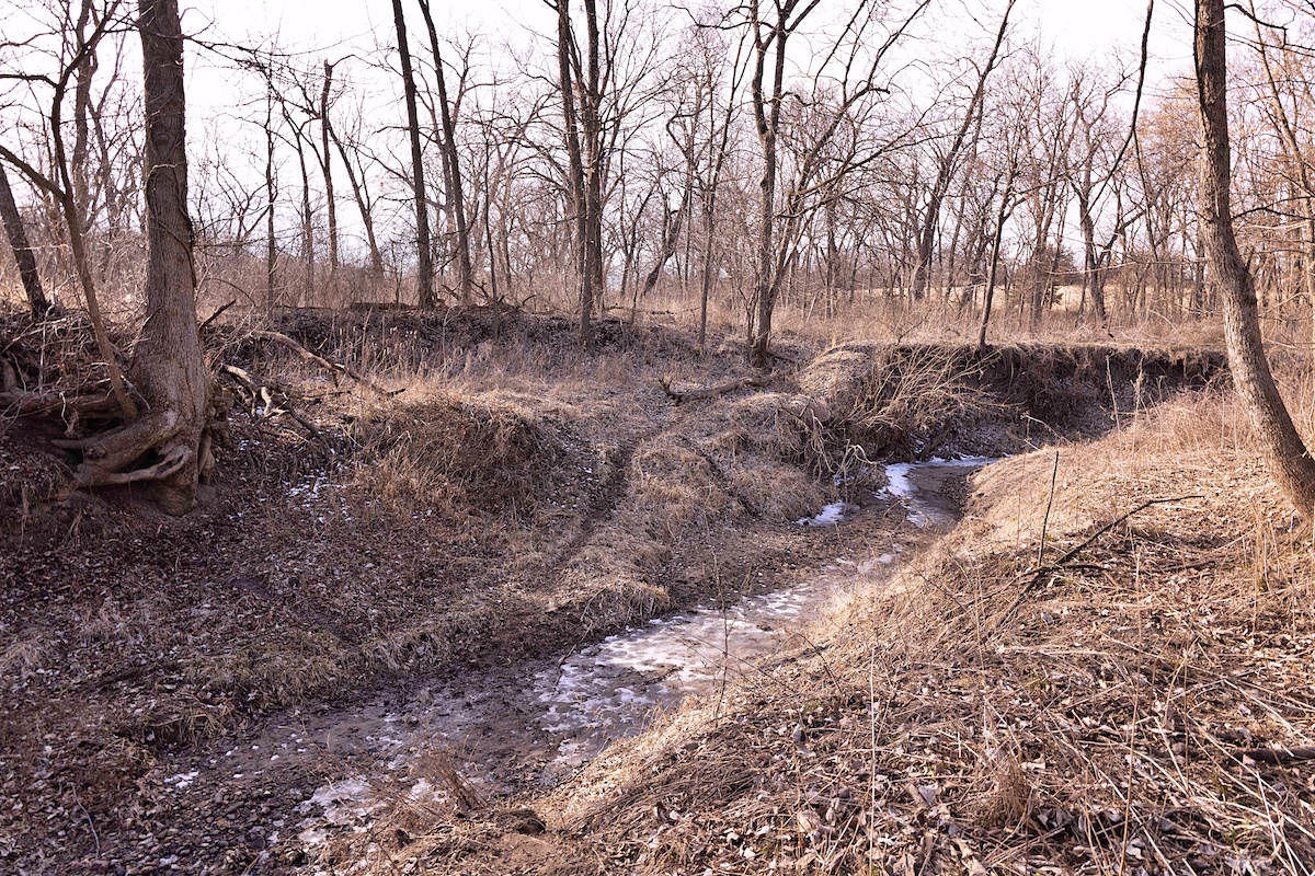 - Mason Creek winds through the farm