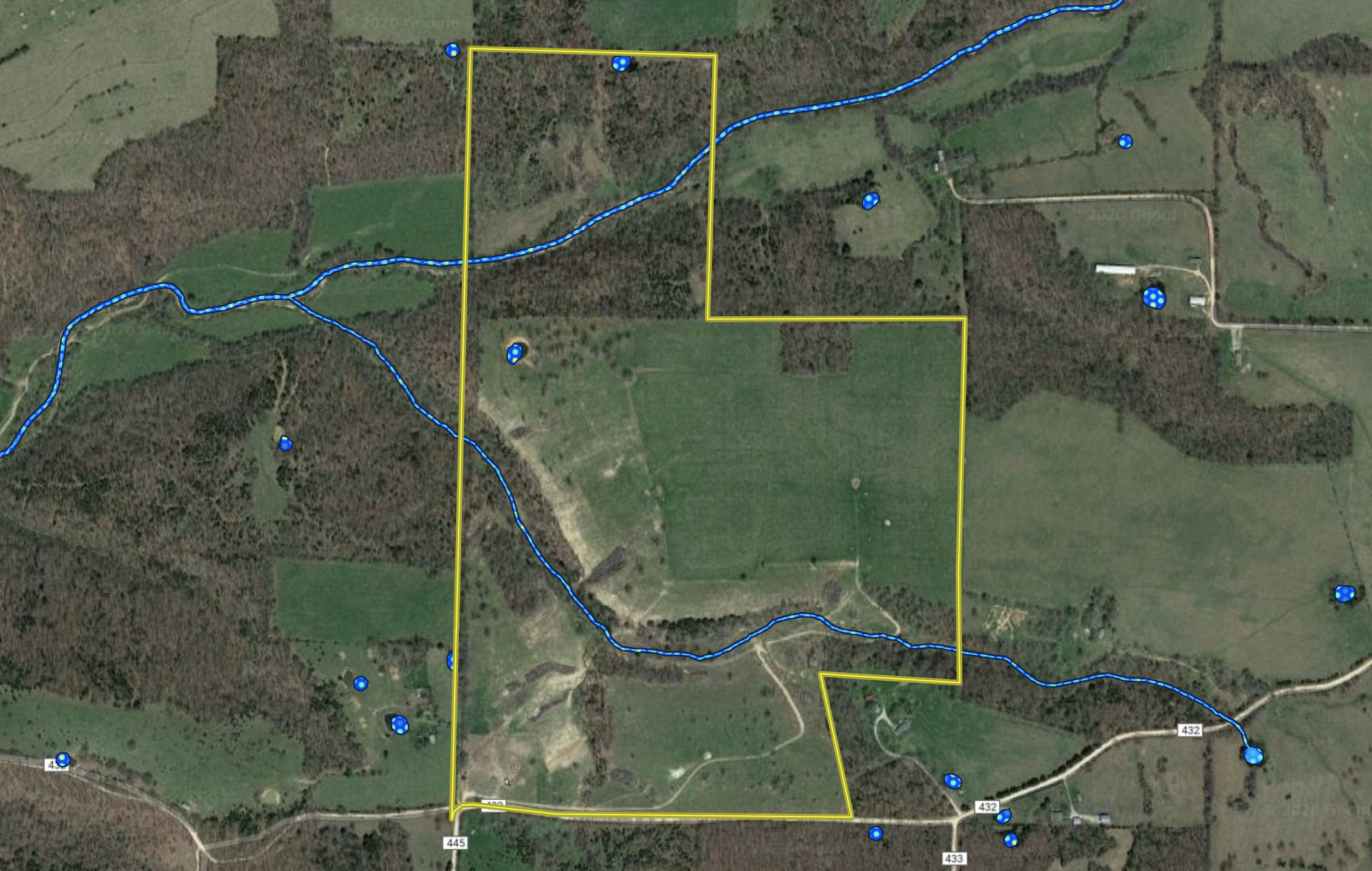 - Live water in the bottoms via spring-fed creeks and 2 nice ponds