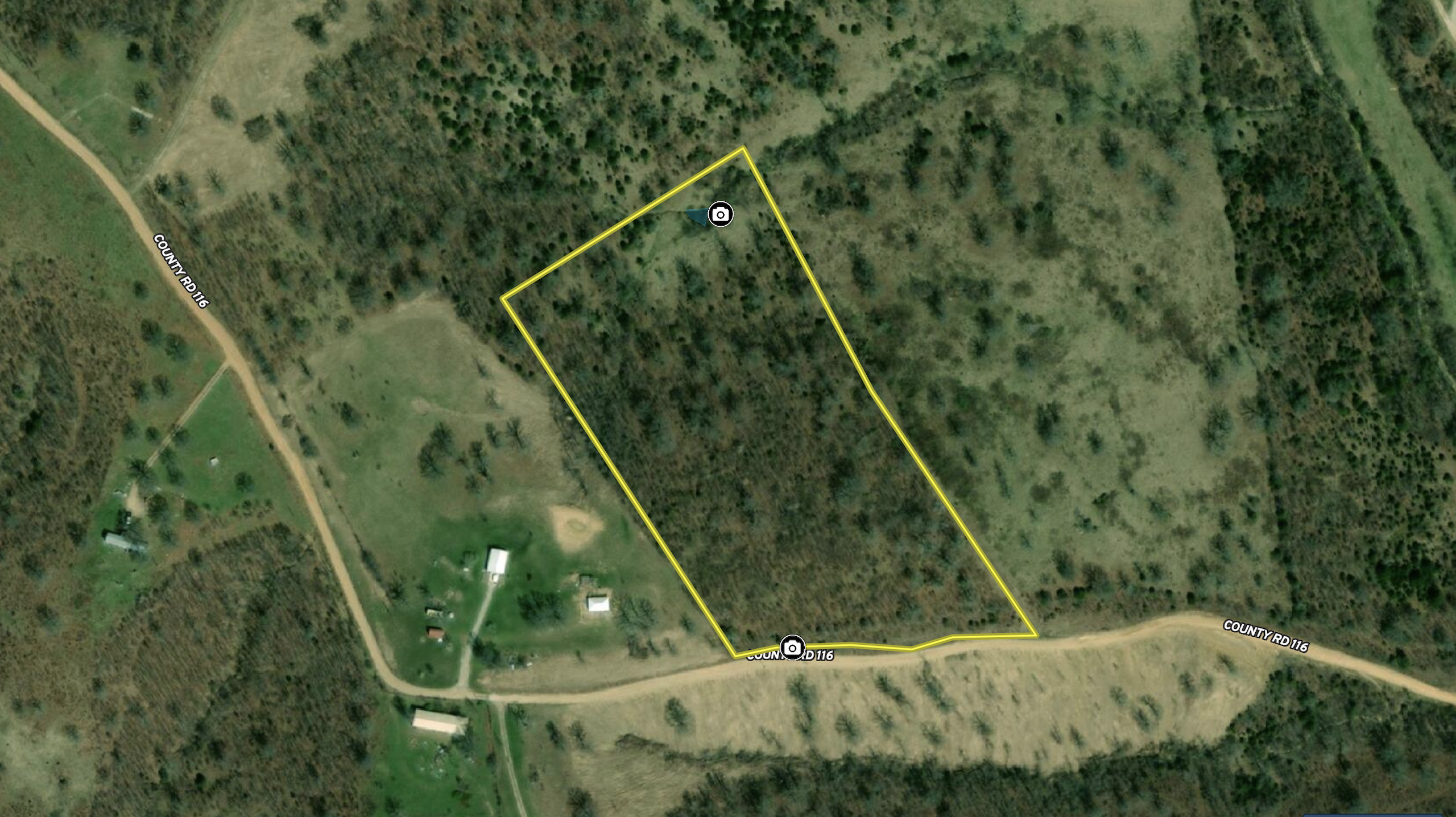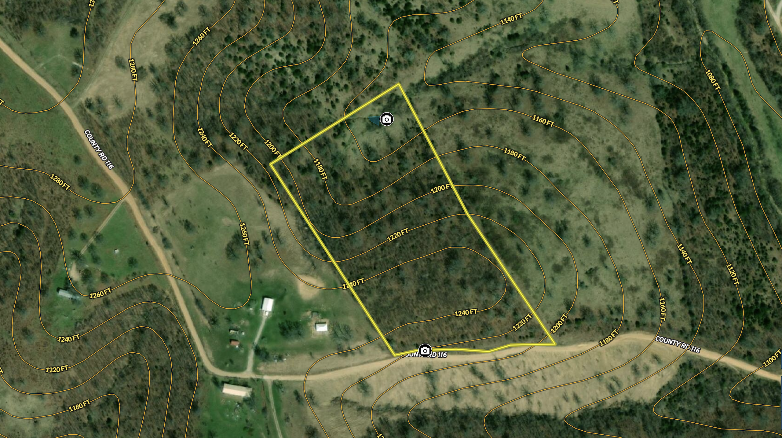 Wooded tract with county road frontage. Nice views from the high point for a building site or a tree stand. Call the listing agent today to take a look at this great small tract.