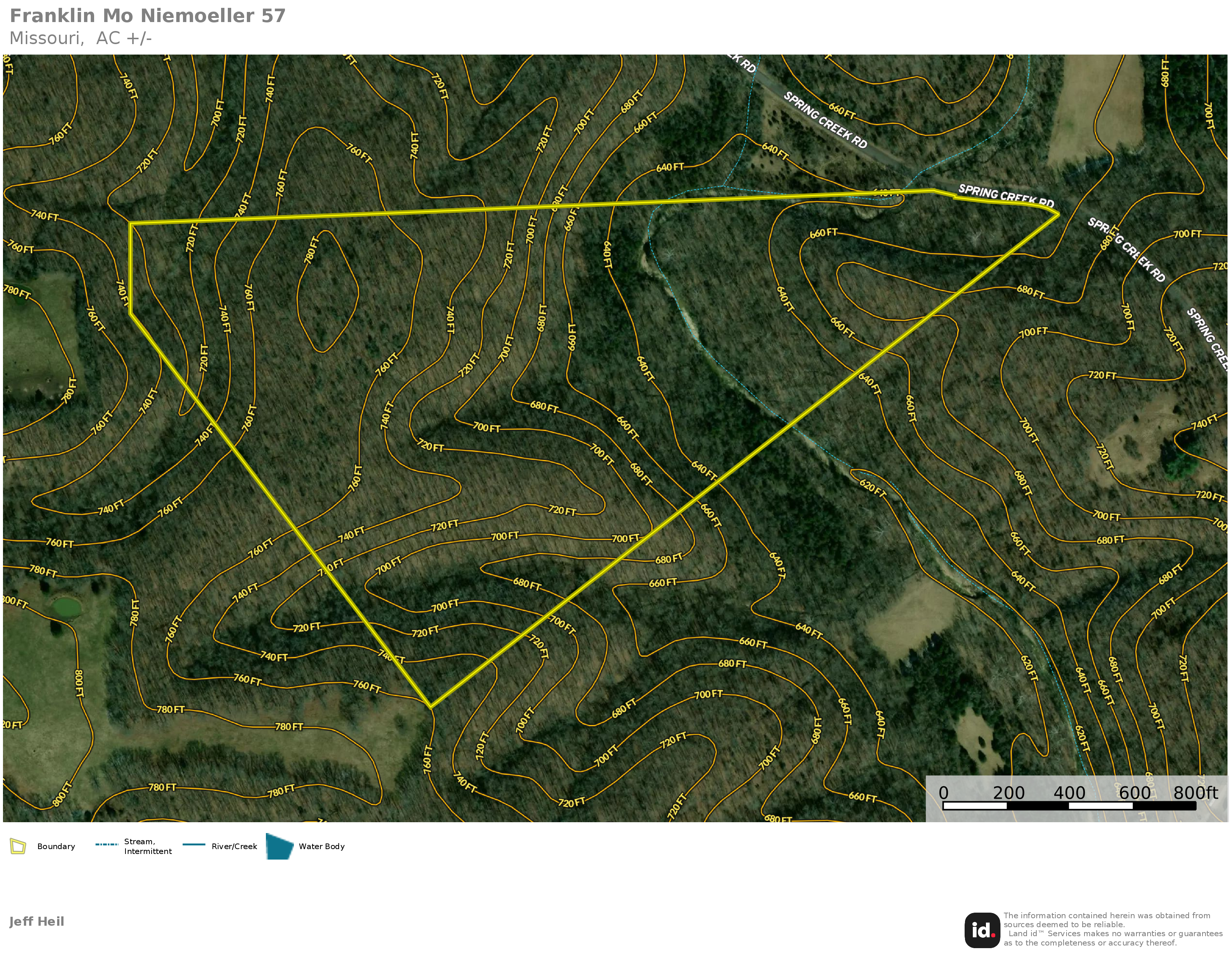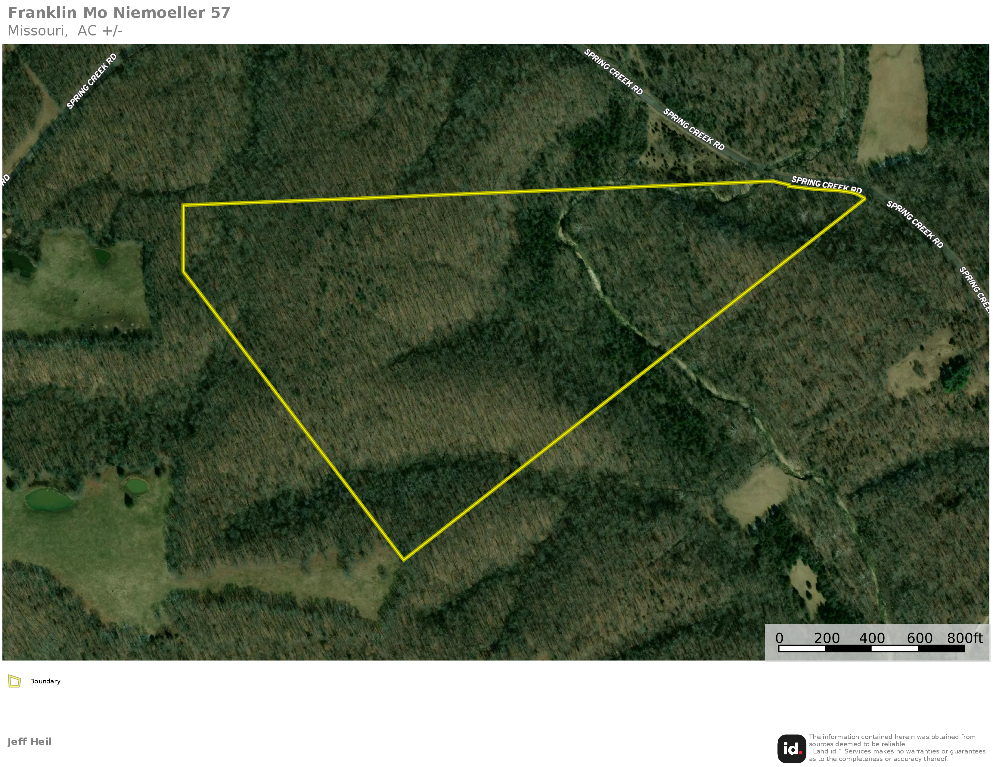 This all-timber tract offers a little bit of everything. The area with road frontage along Spring Creek Road is flat creek bottom but gains in elevation as you travel deeper into the property with two oak ridge tops. These ridge tops have marketable mature oak timber, as seen in the pictures. Between the two ridges lies the creek, which eventually flows into Spring Creek. This creek is beautiful and provides live water for the local deer and turkey. The game sign on this property is plentiful, with numerous deer trails scattered throughout the creek bottom. It's hard to find a tract this size that includes this much diversity of timber, water, and terrain. This property is located in the Spring Bluff School District and is convenient to Sullivan and Interstate 44. Feel free to reach out for your private tour of this great Franklin County tract. Contact Land Specialists Justin Head and Clayton Blum today.