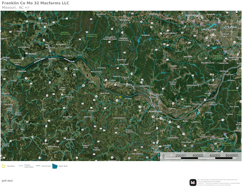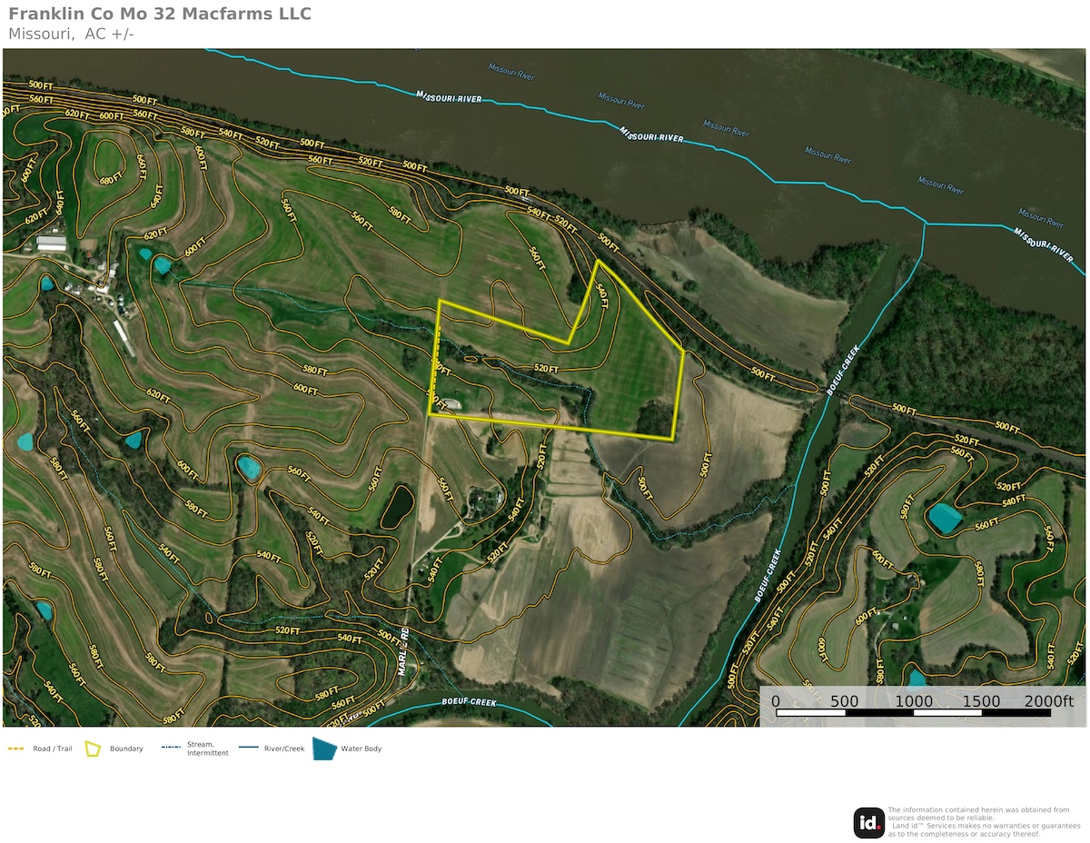 Discover the perfect blend of seclusion and convenience on this 32+/-acre property located at the end of Marlie Road. Located less than 5 miles from Washington city limits and under 2.5 miles from New Haven, you can enjoy privacy without sacrificing proximity to local amenities. Approximately 20 tillable acres offer ample opportunity for some income from the property and lots of food for the local wildlife. From its high point, the property offers glimpses of the Missouri River below, making this an ideal location for your dream home. Essential utilities are already in place, including a well, septic system, and a 200-amp electric service. A 72x42 metal outbuilding with concrete floors, electricity, and a bathroom provides versatile space for storage. Situated within the Washington School District, this location is ideal for building your custom dream home, a convenient tract for hunting, or a great investment in a top tier Franklin County farm.