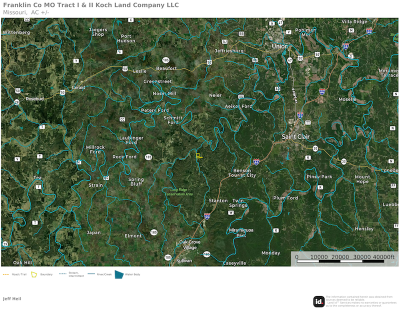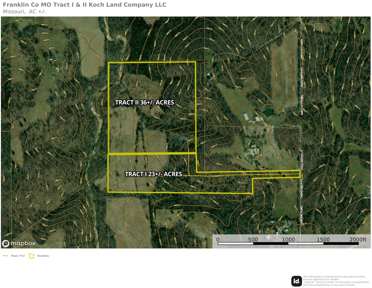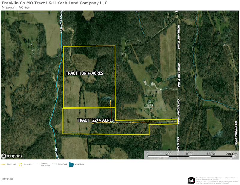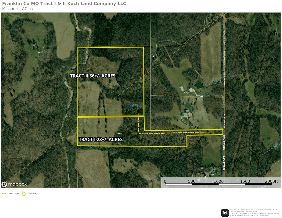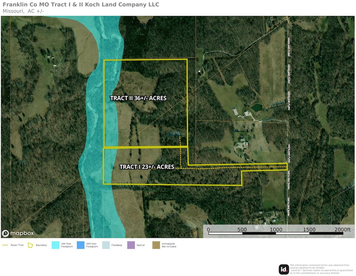 This 22±-acre property, located less than 4.5 miles from Interstate 44, offers both seclusion and accessibility. Most of this property is in the Spring Bluff School District. It features stunning home sites with views of the bottomland below and electric is available along the eastern border. Access is private via Highland Fling Road. With a perfect blend of open ground and timber, this property offers abundant hunting opportunities around your future home. If you’re searching for the ideal place to build your dream home in Franklin County, this property is a must-see. Additional acreage is available.