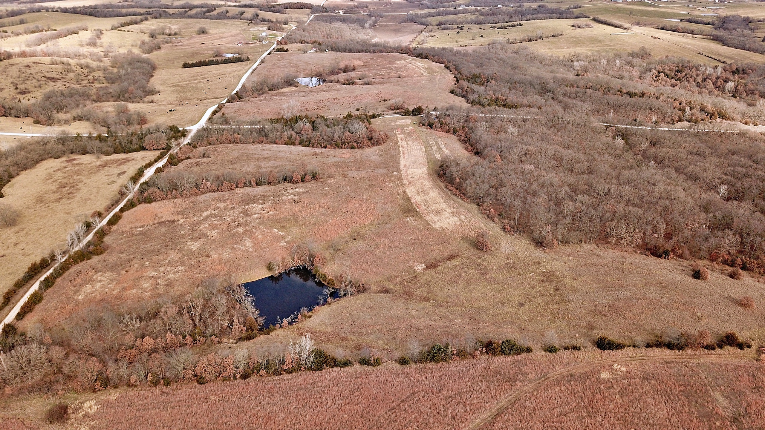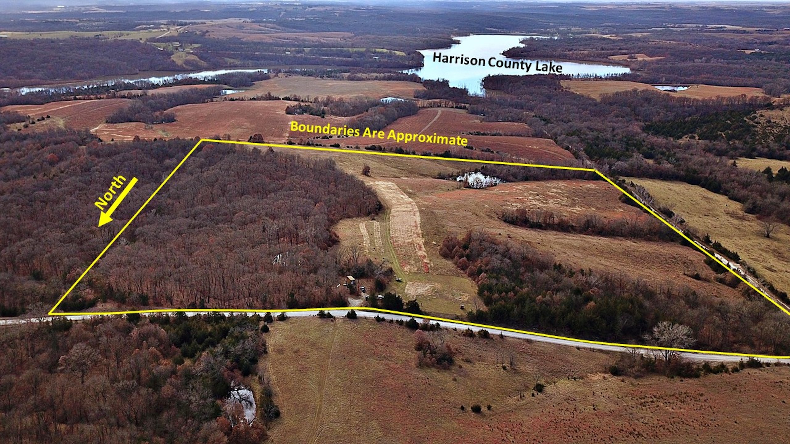Here's a chance to own a top-tier recreational farm, that also pays a nice cash return. A little over half of the farm is open grassland, currently enrolled in CRP practice CP38E. This CRP program enhances upland bird habitat and pays $2,917.00 annually through 2032 ($148.29 per acre on 19.67 acres). Beautiful hardwood timber on the east side of the property shows plenty of deer and turkey sign and joins public hunting land on the north end of Harrison County Lake. The property offers 2 ponds, the larger of which is approximately 1/3 of an acre, that’s loaded with bass. The smaller pond is a woodland watering hole for wildlife. This is an excellent recreational farm for hunting deer, turkeys, upland birds, and small game. Access is great, less than a mile from blacktop W, with a good gravel road along the north boundary, and a county road along the west boundary. Neighboring Harrison County Lake covers 280 acres stocked with bass, walleye, crappie, catfish and more, and is open to the public for fishing, camping, swimming, boating, and hunting.