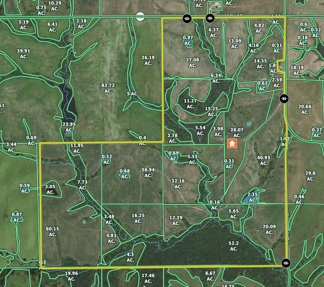Small Game, Big Game, Upland Game, Predators, Waterfowl, Fish, Creek/Spring, Food Plot, Tree Stands/Blinds, Trail Network, Internal Road System