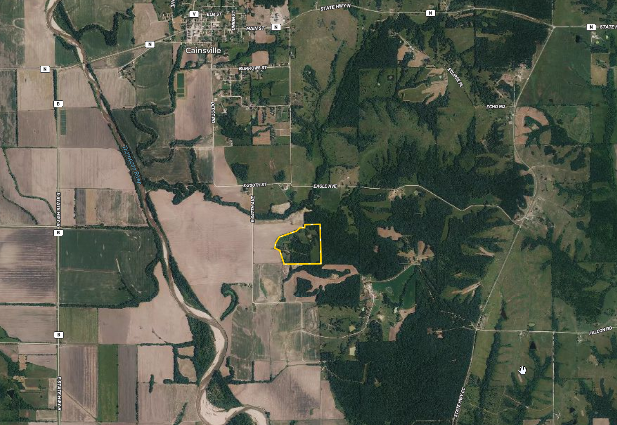 Nestled in the hills above the Thompson River bottoms, this scenic and secluded property features a turn-of-the-century style farmhouse with modern appliances, colors, and textures. The 4 bedroom, 1.5 bathroom home is very spacious with a bedroom on the main floor, and 3 more upstairs. Also upstairs are laundry and an over-sized bathroom offering a claw-foot tub, shower, private toilet, and a custom double vanity. Back down on the main floor, a spacious kitchen joins an open dining area, family room, and a ½ bath. Other buildings include a detached garage, old wooden storage sheds, and two grain bins. The land surrounding the home offers outstanding wildlife habitat where ponds and open fields are separated by timber and brush. The Cainsville area is renowned for excellent deer hunting and this property will be very appealing to hunters as it sits on the edge of thousands of acres of neighboring crop fields. While much of the farm is wooded, there are 10 m/l open acres that could make great food plots, pasture, or hay fields. To complete the package, 3 ponds are hidden in the timber. Two of the ponds were stocked with bass, panfish, crappie, and catfish but haven’t been fished in a while. This private estate is shown strictly by appointment only. Please call, text or email to learn more and schedule your private tour.