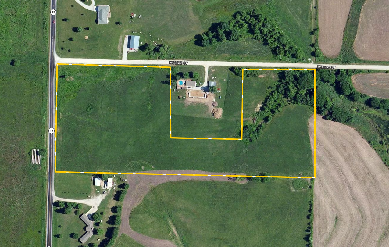 - Excellent access with frontage on 13 highway to the west, and County Road W 332nd Street to the north
