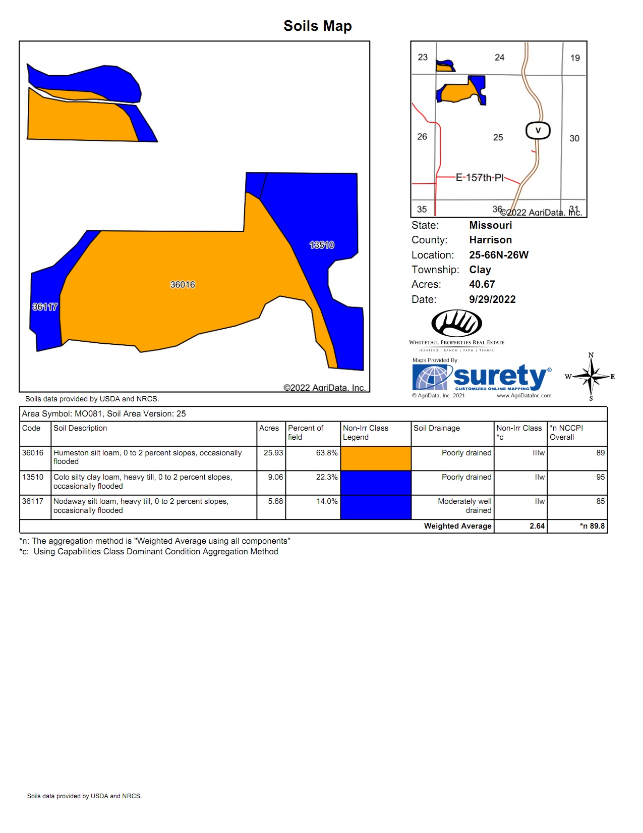 Presenting a highly tillable farm with quality Class II and III soils, and very little waste ground. The Thompson River Bottoms north of Cainsville are known for their productive soils, and this farm is no exception with an average NCCPI of 89.8! Soils include Humeston silt loam, Colo silty clay loam, and Nodaway silt loam, all with 0-2% slopes. The property is nearly all tillable with very little waste ground, and is accessed by an old township road. A survey has been ordered to mark boundaries, create a legal description, and measure the acreage. Contact Land Specialist Jason Patterson today for more information, or to schedule your private tour.