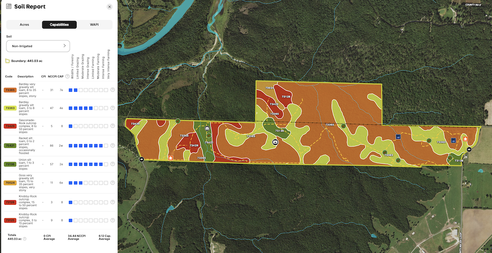 - Class 2 soils along creek with impressive food plot each year