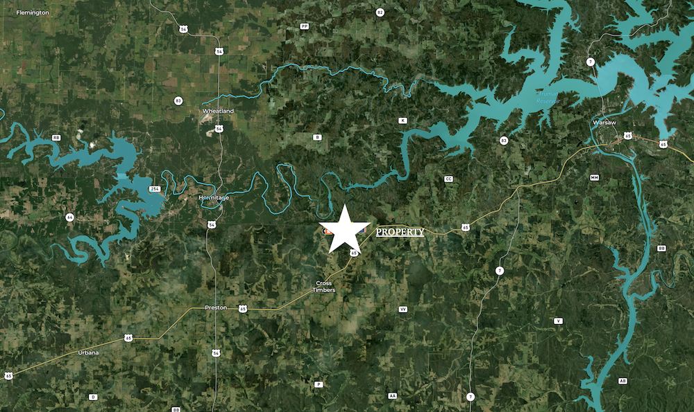 - Farm is bordered by a 4,000-acre tract on the East side and Truman Lakes - Army Corp of Engineer frontage on the west