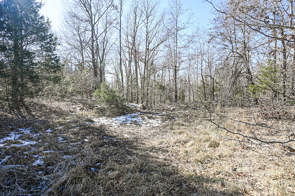 The mix of hardwood timber and early growth cover creates natural travel corridors for whitetail deer and other native wildlife. Edge habitat between woods and open ground enhances hunting and land management potential. With thoughtful clearing and planning, the open acreage could easily support small-scale farming, livestock, or self-sufficient living.