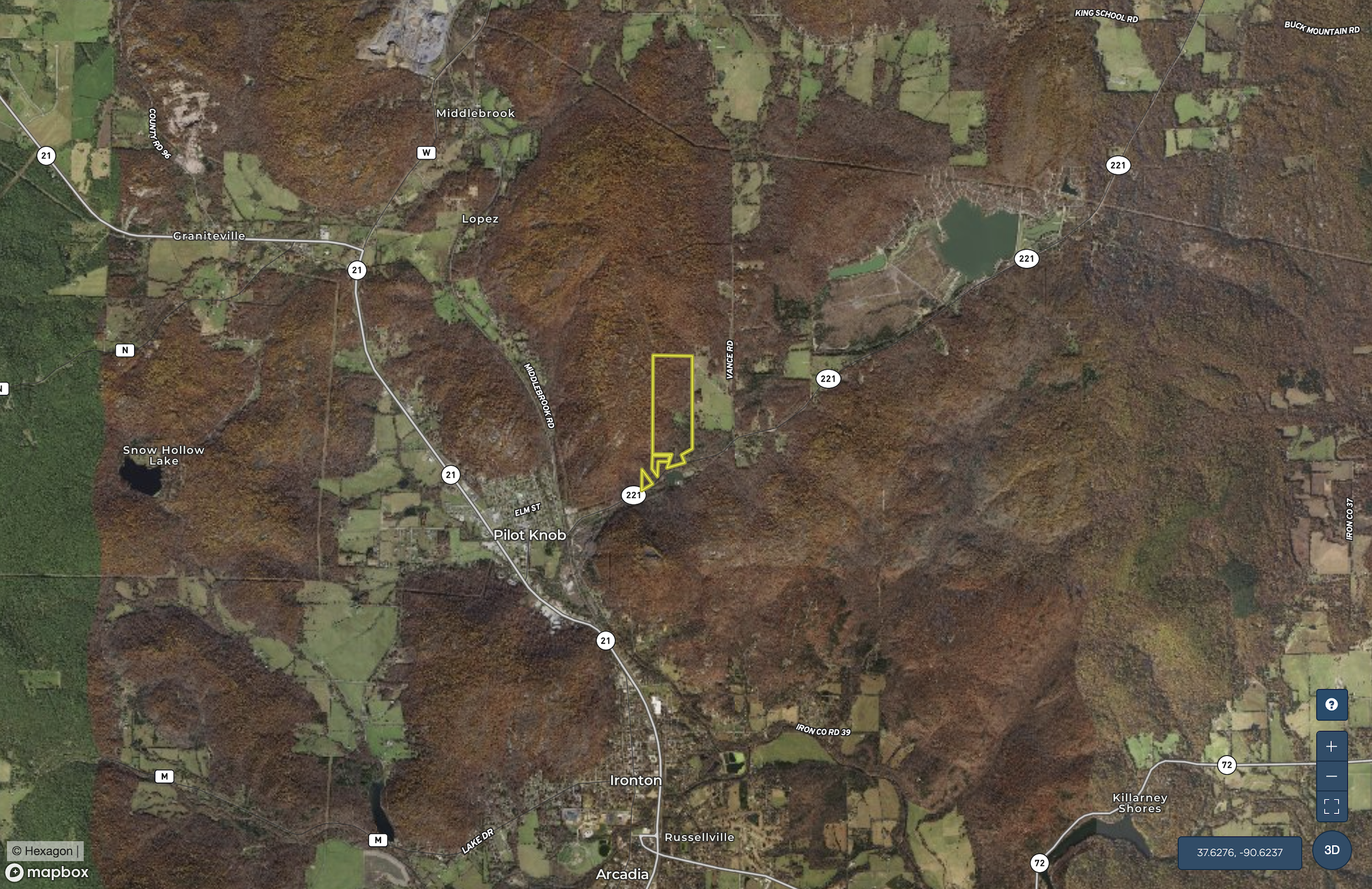 - 2 miles NE of Pilot Knob, 20 minutes SW of Farmington, 1:10 South of St Louis