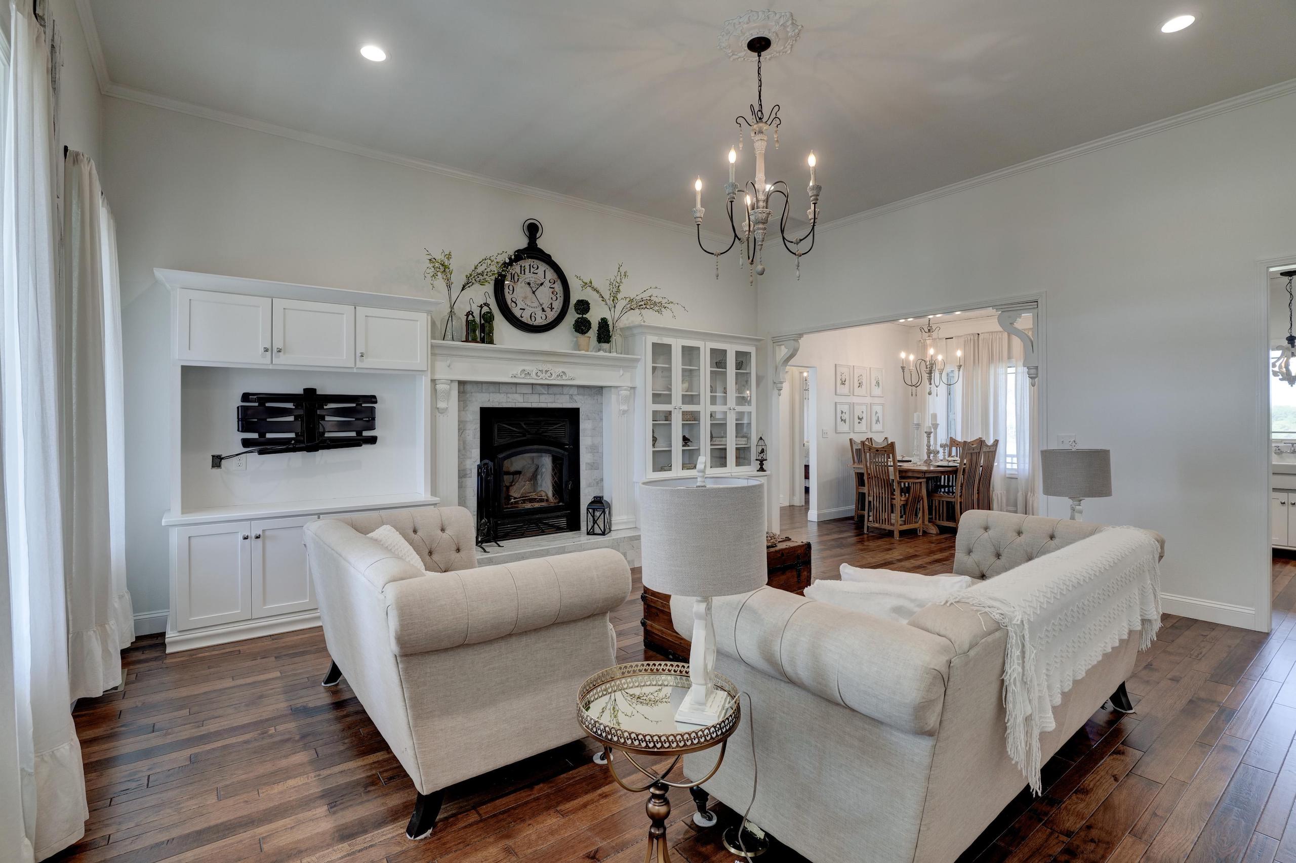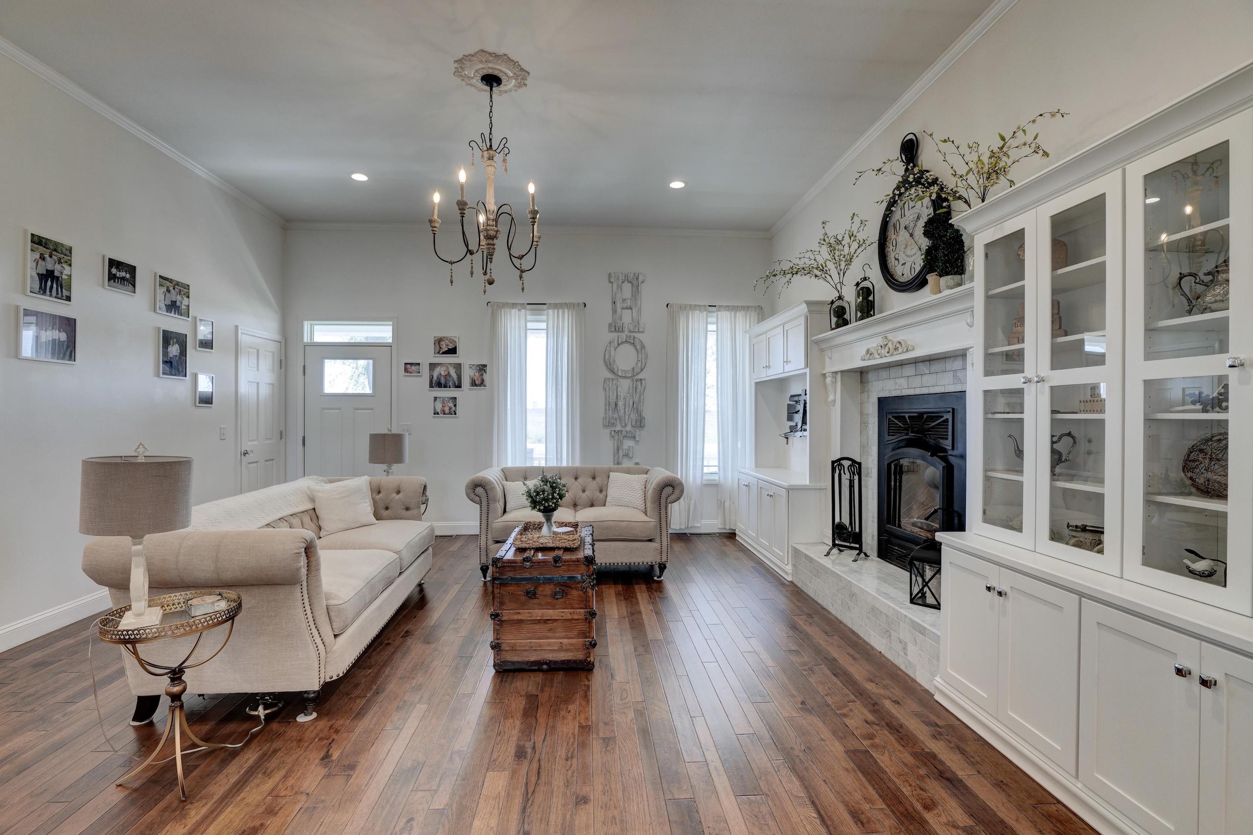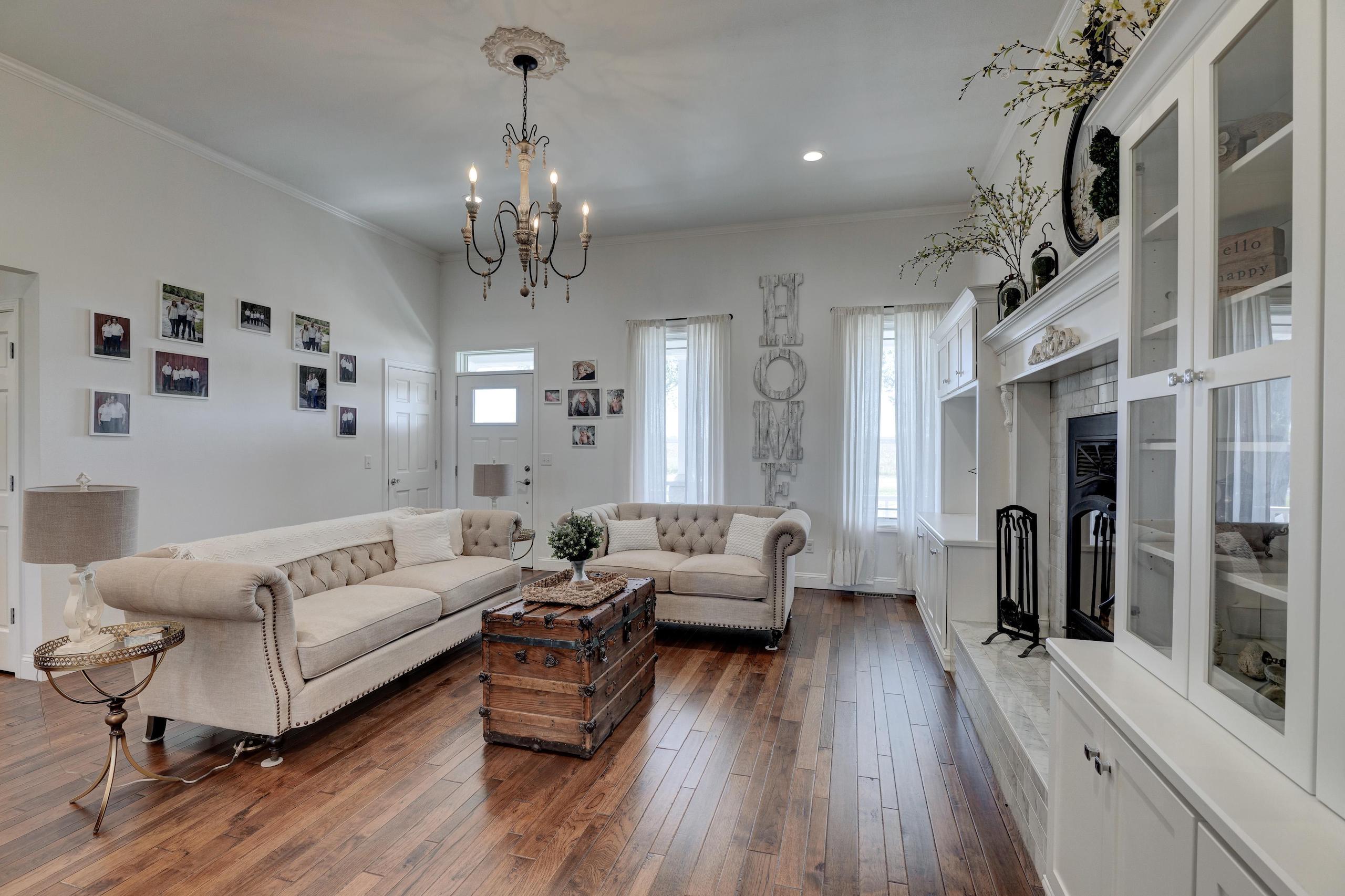 Things dreams are made of! This exquisite custom-built country home could easily be featured in any designer showcase magazine or HGTV broadcast. Impeccable attention to craftsmanship and detail is displayed throughout the entire 3 bedroom, 2 bath home. Beautiful hardwood floors, crown moulding, and custom cabinetry greet you upon entering the main living area and can be found flowing throughout every room. The wonderful wood-burning fireplace creates a perfect cozy gathering place for family and friends. The open dining and kitchen area is nestled under the white tin ceiling, which gathers subtle shades of light reflecting off the Carrera marble countertops. All appliances are electric and state of the art. The master bedroom ensuite includes a large glass-enclosed shower, claw foot soaking tub, dual Carrera marble-topped vanity and Carrera tile floor. The additional full bath and utility room also have the same flooring. Two additional well-appointed bedrooms round out this gorgeous home. The land has everything you’re looking for, 19 +/- acres of open, clean, fenced pasture made up of Class 2 tillable soils composed of Newtonia-Eldorado silt loams and Verdigris silt loam, 10 +/- acres of timber, and a very nice 1-acre pond. Year-round Coon Creek runs through the timbered portion helping to create a perfect area to hold and grow large whitetails and sustain the other abundant wildlife. Forage is very plentiful; if you look at the maps, you will see the property is adjacent to large crop-producing fields, making the timber an ideal bedding and funnel area. For a smaller hunting area, this is ideal. To round the amenities out, you have a 60’ x 66’ barn and a 24’ x 36’ garage. The total package this home and property offers is indeed a rarity, and you should not hesitate to schedule a showing. A lender’s pre-approval or a letter of financial capability is required prior to viewing the property. Please give Land Specialist Jeff Quade a call if you have any questions and to schedule a showing.
