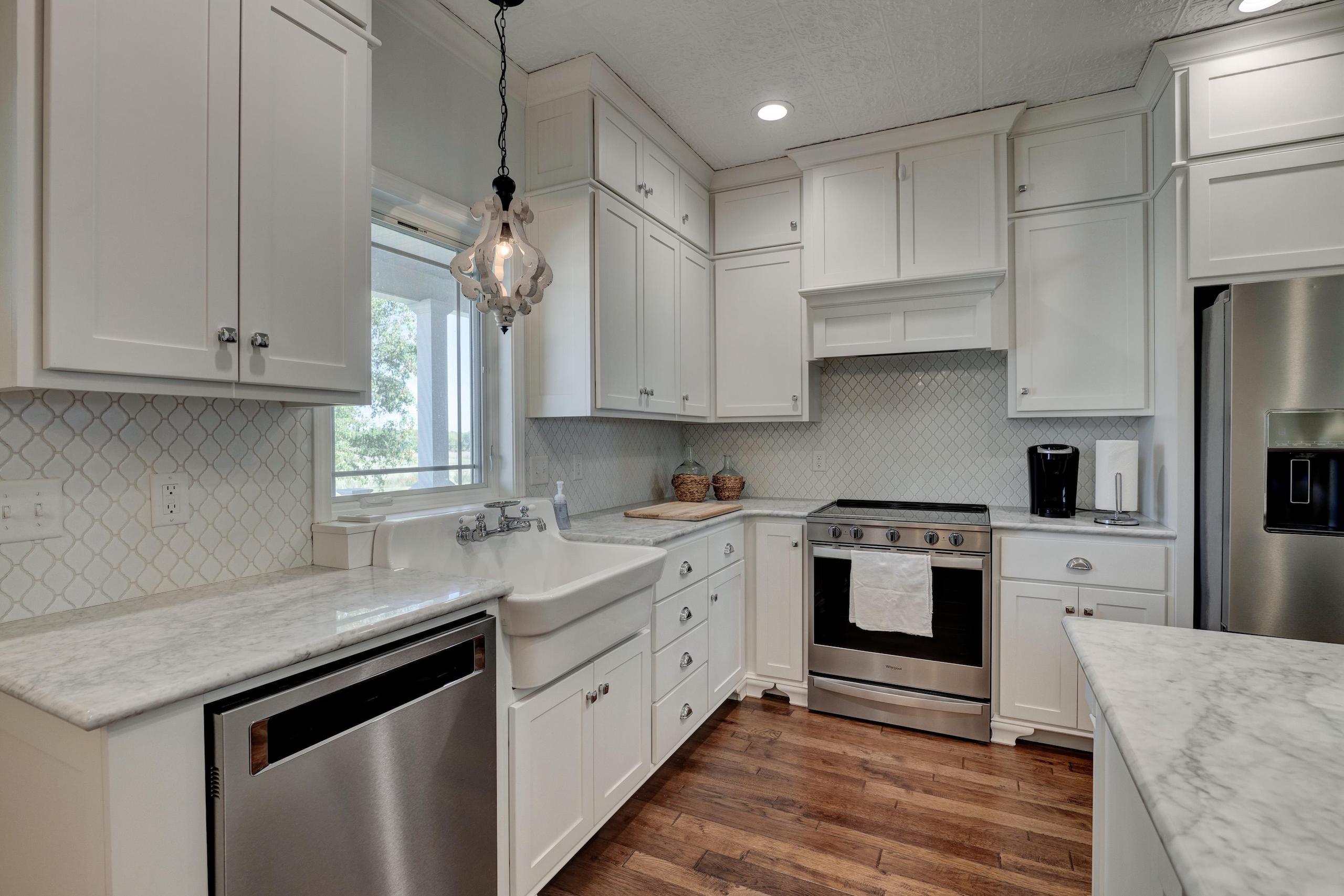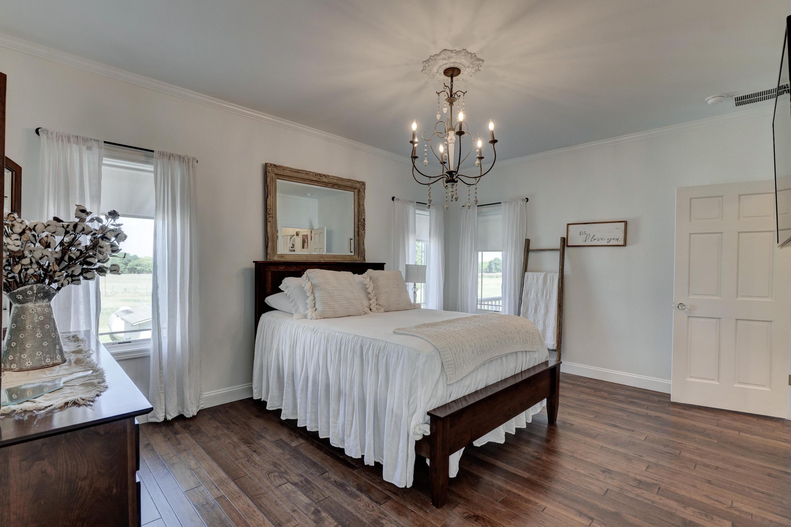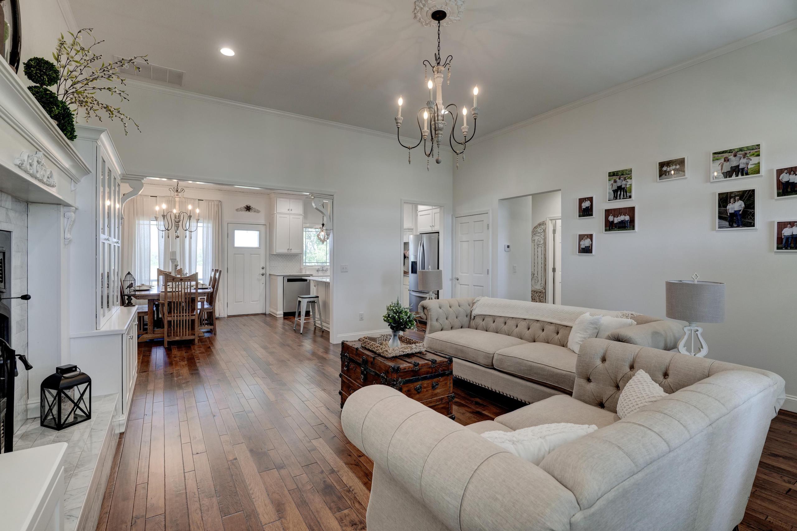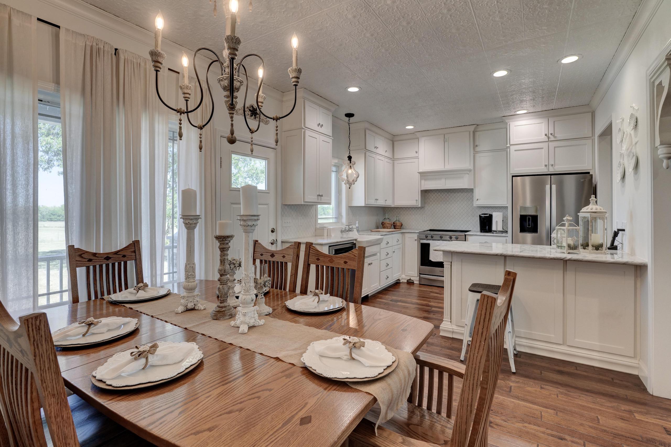 Things dreams are made of! This exquisite custom-built country home could easily be featured in any designer showcase magazine or HGTV broadcast. Impeccable attention to craftsmanship and detail is displayed throughout the entire 3 bedroom, 2 bath home. Beautiful hardwood floors, crown moulding, and custom cabinetry greet you upon entering the main living area and can be found flowing throughout every room. The wonderful wood-burning fireplace creates a perfect cozy gathering place for family and friends. The open dining and kitchen area is nestled under the white tin ceiling, which gathers subtle shades of light reflecting off the Carrera marble countertops. All appliances are electric and state of the art. The master bedroom ensuite includes a large glass-enclosed shower, claw foot soaking tub, dual Carrera marble-topped vanity and Carrera tile floor. The additional full bath and utility room also have the same flooring. Two additional well-appointed bedrooms round out this gorgeous home. The land has everything you’re looking for, 19 +/- acres of open, clean, fenced pasture made up of Class 2 tillable soils composed of Newtonia-Eldorado silt loams and Verdigris silt loam, 10 +/- acres of timber, and a very nice 1-acre pond. Year-round Coon Creek runs through the timbered portion helping to create a perfect area to hold and grow large whitetails and sustain the other abundant wildlife. Forage is very plentiful; if you look at the maps, you will see the property is adjacent to large crop-producing fields, making the timber an ideal bedding and funnel area. For a smaller hunting area, this is ideal. To round the amenities out, you have a 60’ x 66’ barn and a 24’ x 36’ garage. The total package this home and property offers is indeed a rarity, and you should not hesitate to schedule a showing. A lender’s pre-approval or a letter of financial capability is required prior to viewing the property. Please give Land Specialist Jeff Quade a call if you have any questions and to schedule a showing.