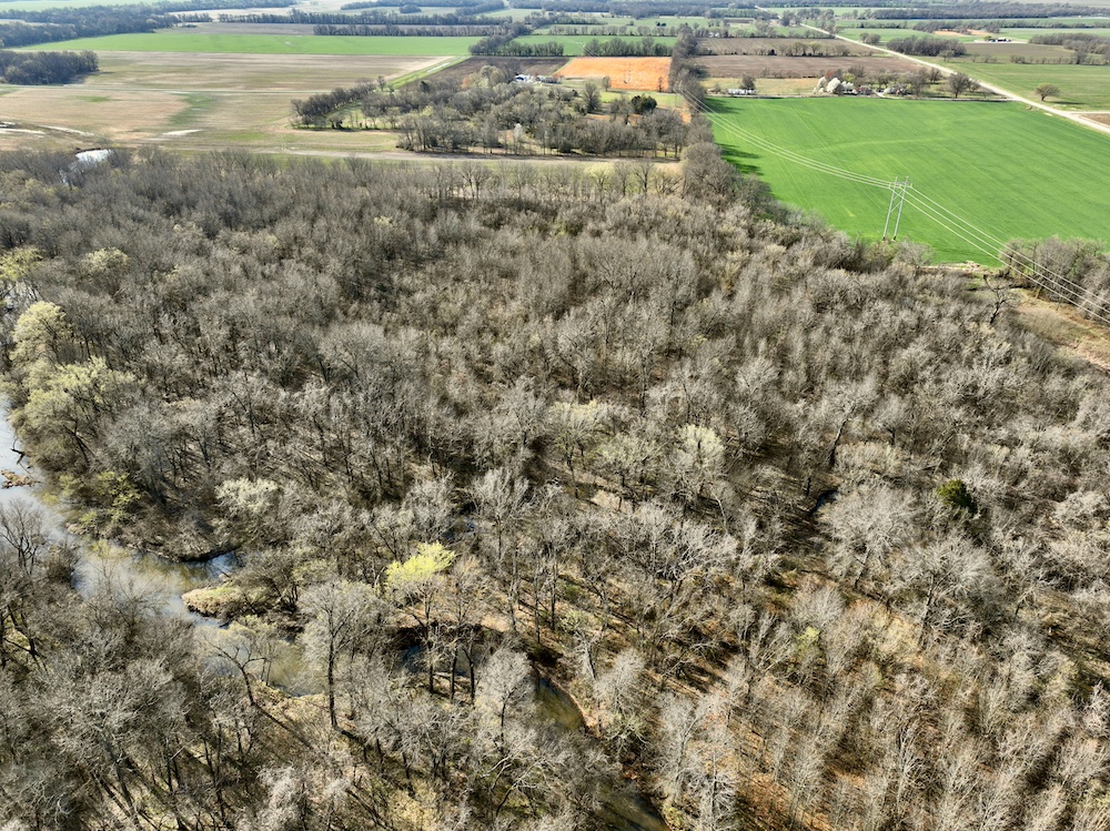 This highly attractive mixed-use farm offers a rare combination of productive agricultural soils and exceptional whitetail deer and turkey hunting habitat. Approximately 30± acres of the property consist of high-quality Class II tillable soils, primarily Cherokee silt loam and Opolis silt loam, both well known throughout the region for their productivity, favorable moisture-holding capacity and dependable yield potential. These soils support strong row-crop production and provide reliable annual income potential through owner operation or cash rent while simultaneously serving as a valuable food source for local wildlife. The surrounding agricultural landscape further enhances the property’s value, as nearby crop fields create an abundant forage base that helps sustain and attract a healthy deer and turkey population throughout the year. Two live water features, Blackberry Creek and Pond Creek, traverse the property and provide dependable water while contributing significantly to the farm’s wildlife habitat and hunting dynamics. The creeks feature sections of steep banks and natural terrain variation which combine to create pronounced travel corridors and natural pinch points that funnel whitetail movement through the property. These natural funnels are particularly effective during the rut when mature bucks travel between bedding areas and surrounding food sources, creating predictable movement patterns and excellent stand locations. The farm contains a diverse mix of hardwood and softwood timber that contributes to its exceptional wildlife carrying capacity. Mast-producing hardwoods provide critical seasonal food sources during fall and early winter, while softwoods and thick understory vegetation create excellent thermal cover and security habitat. Dense ground cover and natural bedding areas allow deer to remain protected while maintaining close proximity to surrounding feeding areas and the timber-to-field transition zones create ideal edge habitat frequently used by both deer and turkey. Evidence of mature whitetail activity across the property is remarkable, with an overwhelming amount of buck sign including rub lines, scrapes, trails, and bedding areas observed throughout the farm, ranking among it among some of the strongest deer activity I have encountered on a property. Turkey hunting is equally impressive, as the combination of mature timber, creek corridors, open agricultural ground and nesting cover supports a large and stable turkey population. The creeks provide reliable water and roosting habitat while the surrounding open areas create ideal strutting zones during the spring season. In addition to its agricultural productivity and recreational value, the property offers practical infrastructure with both electric and rural water available at the road, allowing for potential cabin sites, hunting lodge construction or a future country home. Overall, this farm represents a highly desirable combination of Class II agricultural soils, dependable water resources, exceptional wildlife habitat, and outstanding whitetail and turkey hunting opportunities, making it a rare and versatile property capable of providing both agricultural income and premier recreational enjoyment.