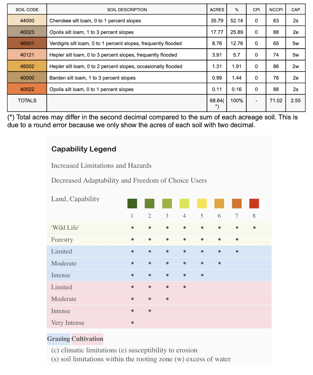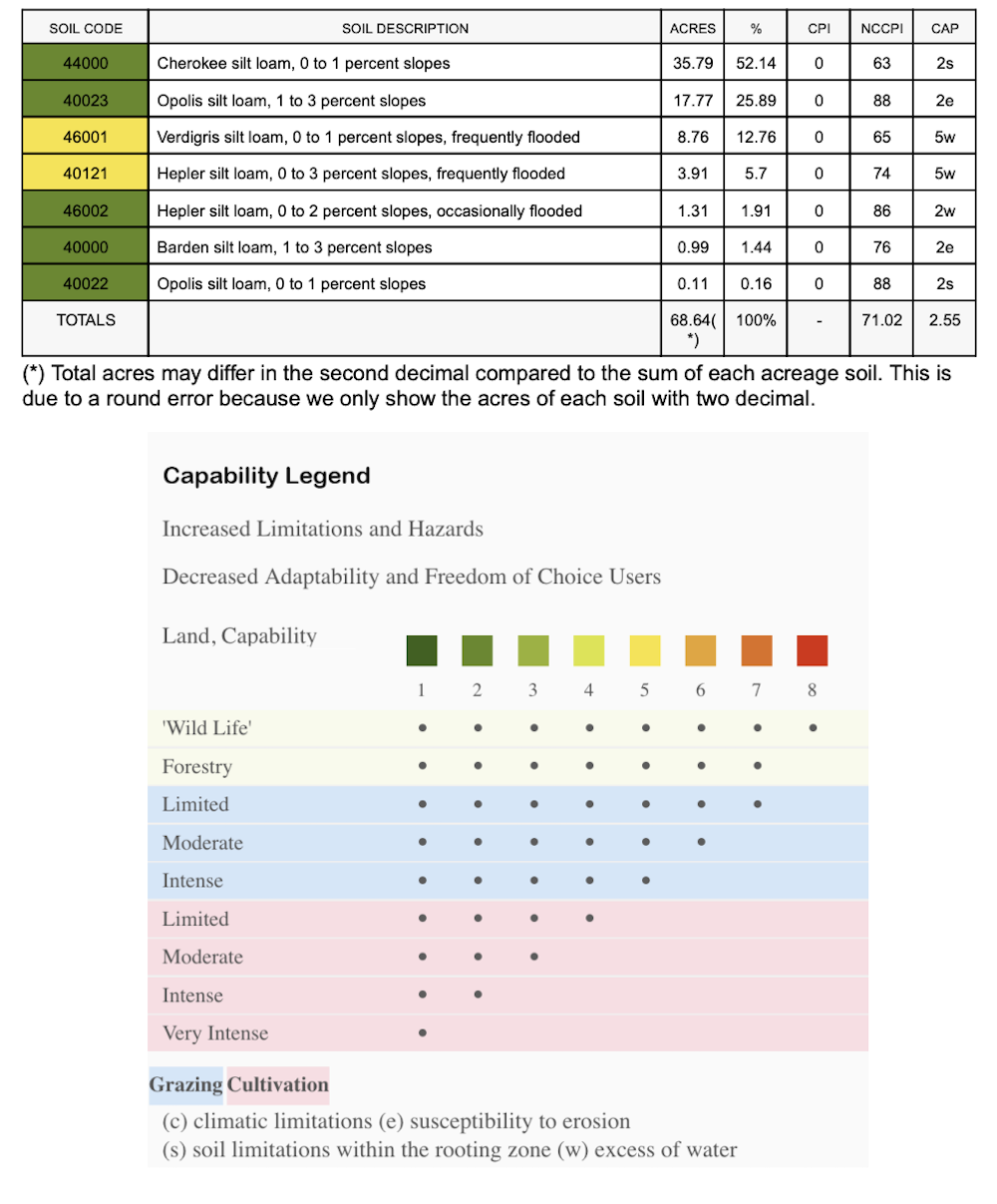 - Predominantly Cherokee silt loam and Opolis silt loam Class 2 soils
