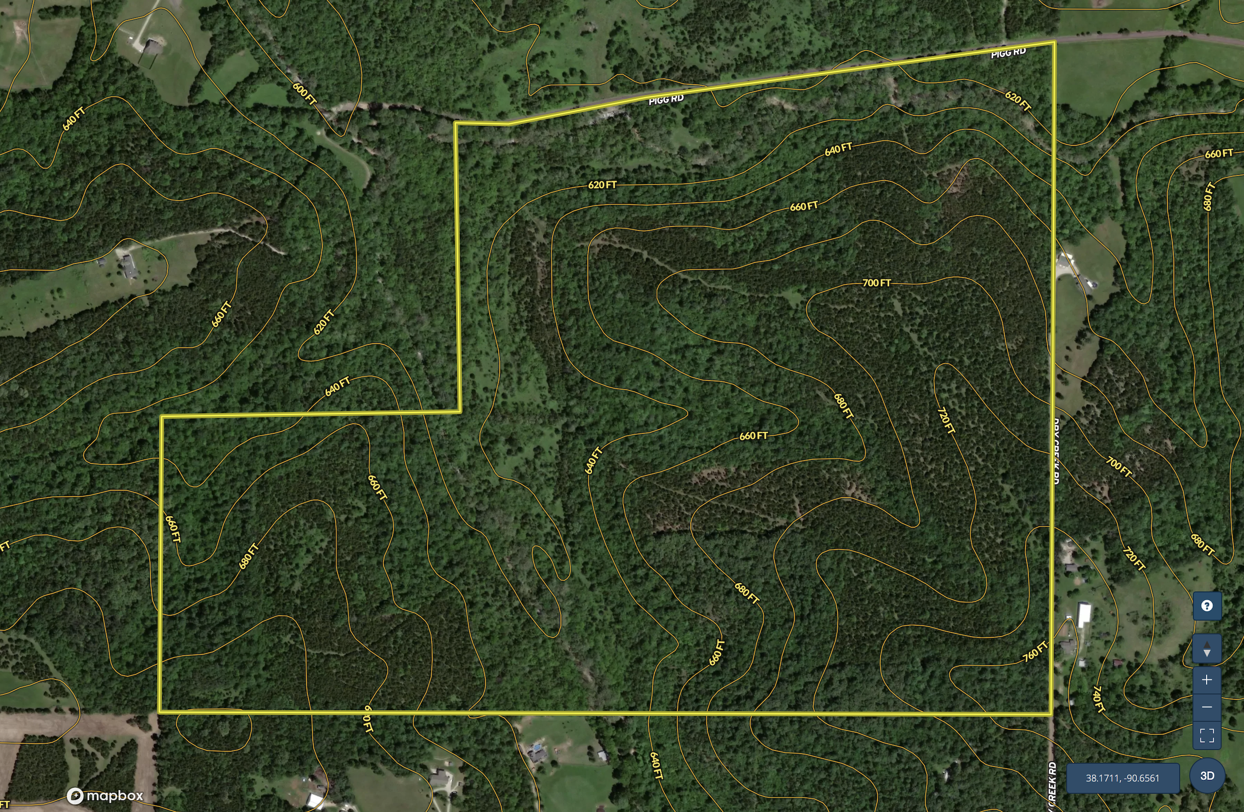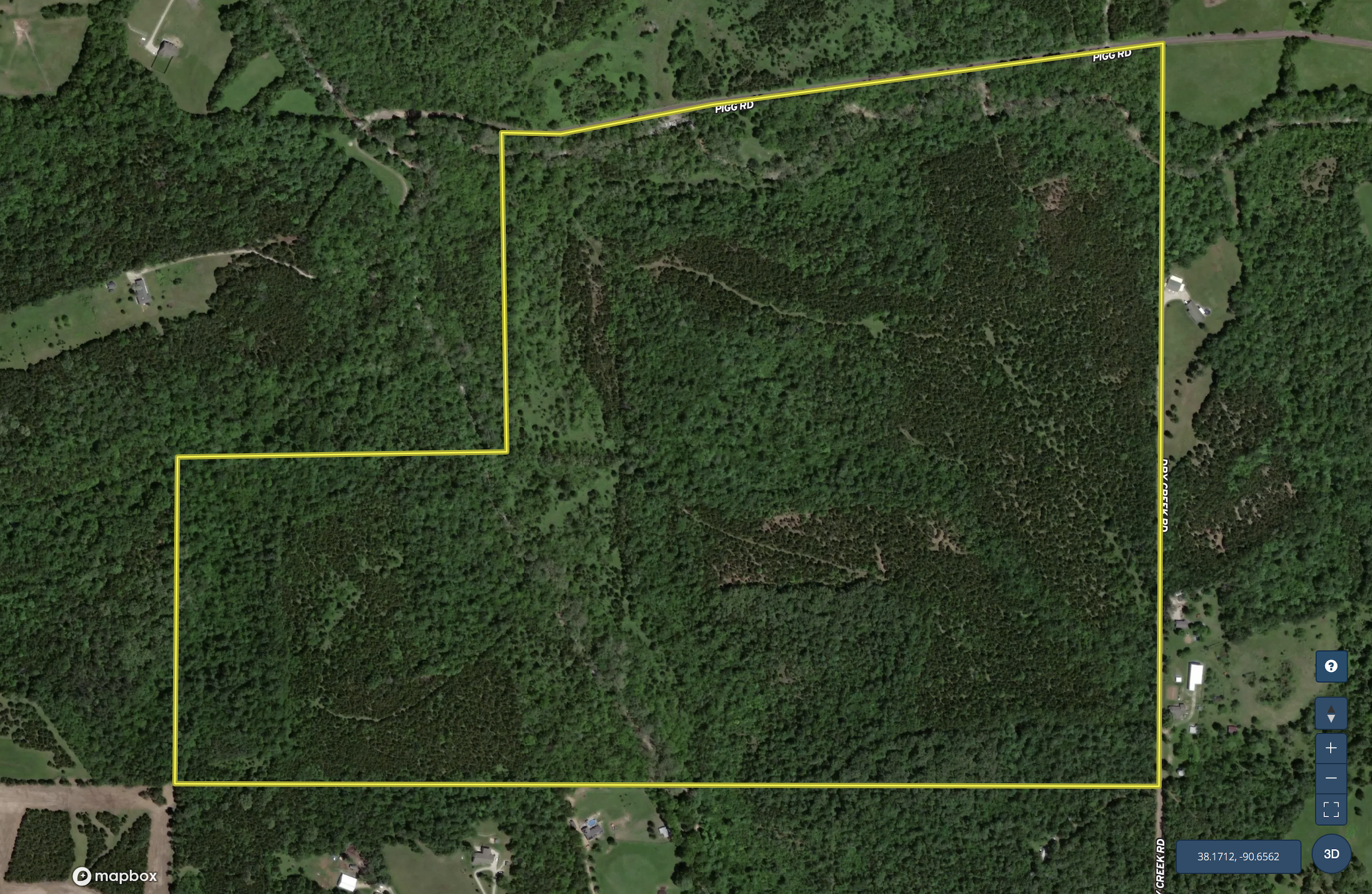 This excellent hunting farm is located on the south side of Pigg road and can also be accessed off of Dry Creek Road. This all- timber property is very thick, with some large hardwood timber and several cedar thickets. With all the thick areas mixed in with several small food plots, this is a hunter’s dream! This farm could hold several large mature deer and offer great turkey hunting opportunities. This farm is also unique because you can enter it from the north or the south depending on the wind direction you want to hunt. The Dry Creek also runs through the property offering year-round water for the large population of wildlife calling this farm home. This farm also provides numerous building locations on both ends of the property, with electricity available on both ends. If you are looking for an excellent hunting farm not too far from the city, then this is a must see! Call today to schedule your own private tour.