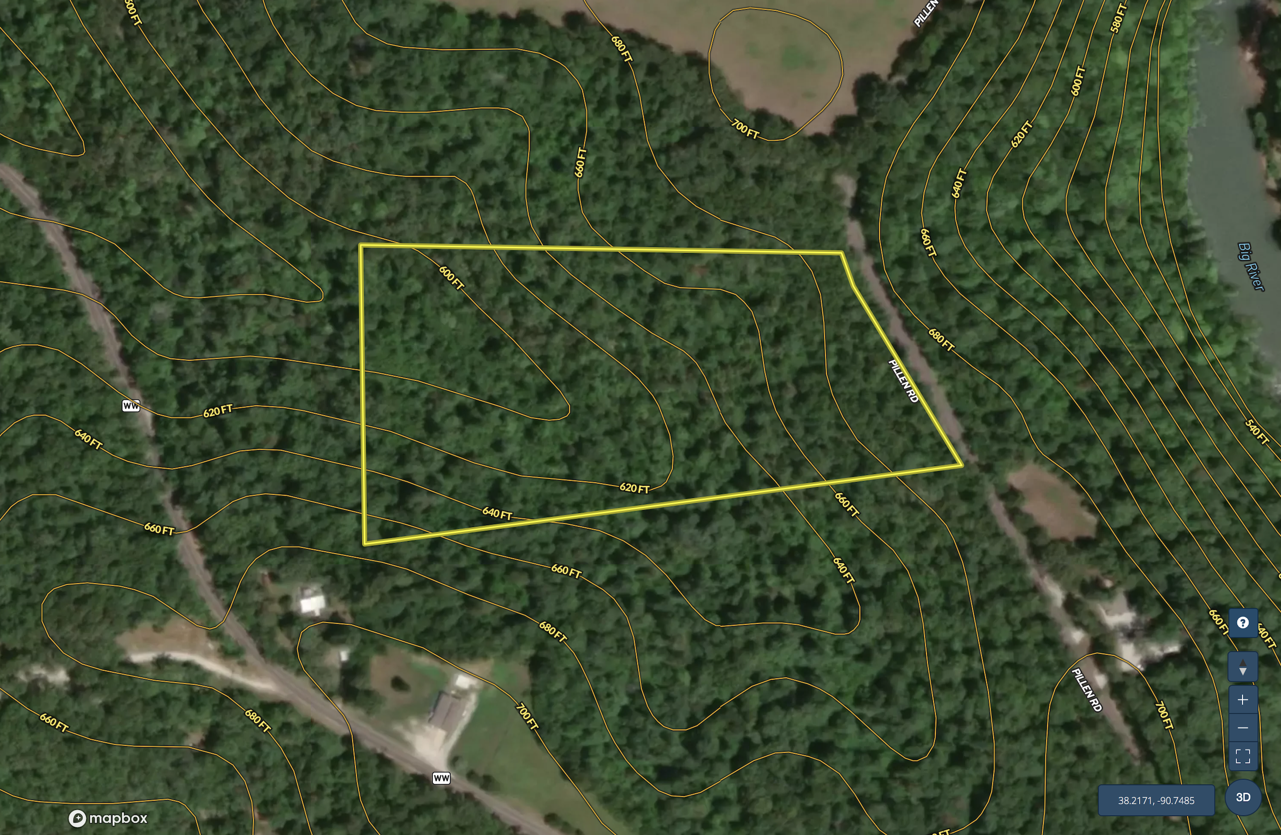This great little property is located off of Pillen Road, just off of Highway WW. This all timber property offers you excellent building locations. There is electric and paved road frontage along with scenic views overlooking the Big River bottoms. Not only is it a great building location but this property and this area are home to a very healthy herd of deer and turkey, making for excellent hunting opportunities. If you are looking for some acreage to build your dream home on, then this is a must see! Call today to schedule a time to view the property.