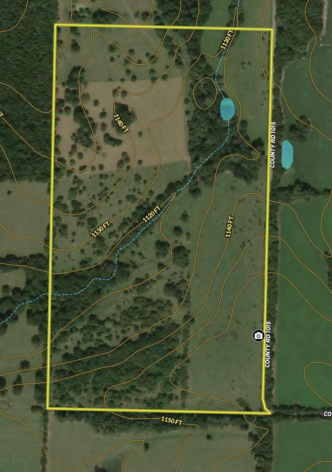 - Elevation changes of 1160 at road to 1120 at creek